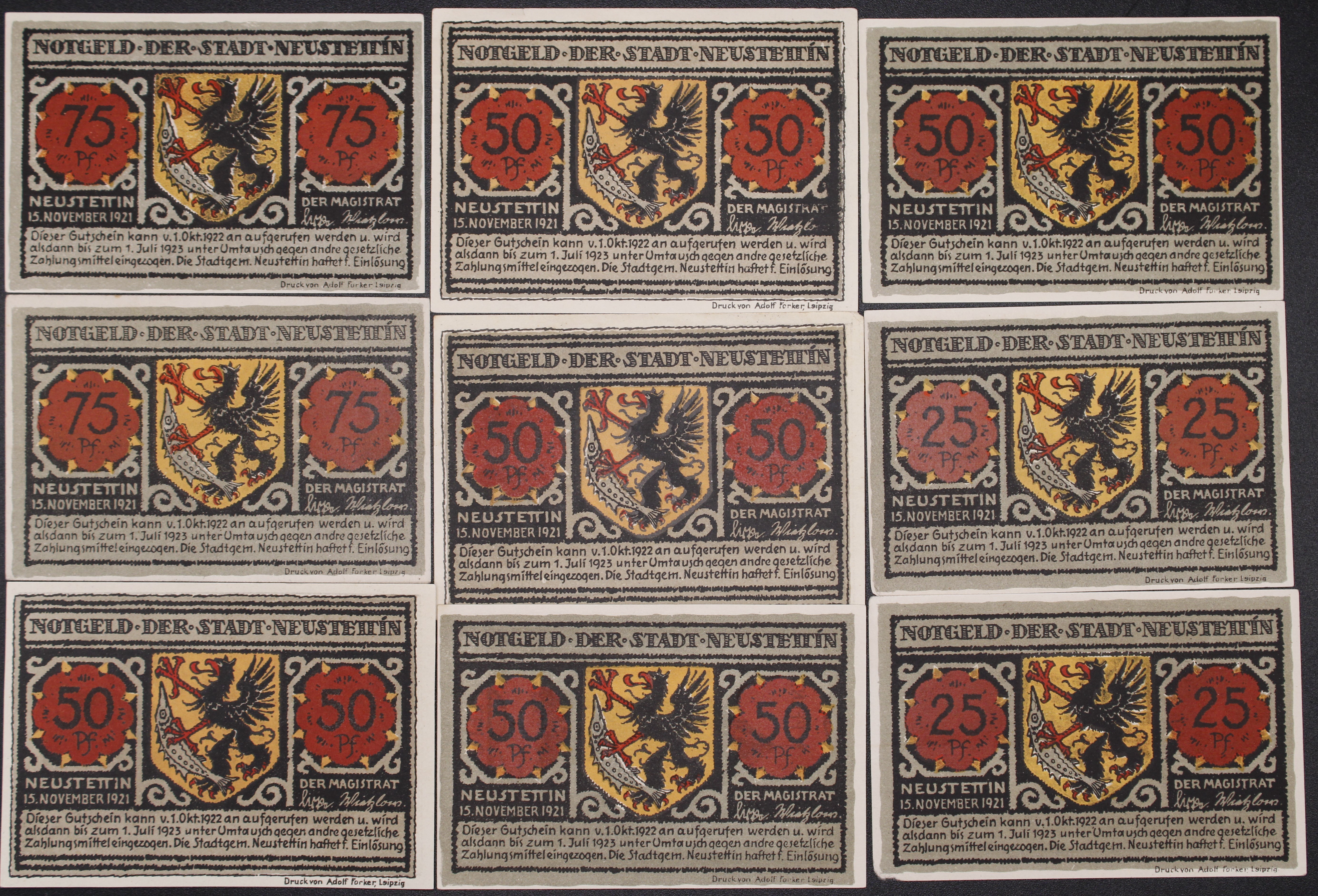 Poland. Szczecinek 2 x 25, 5 x 50, 2 x 75 Fenigow 1921