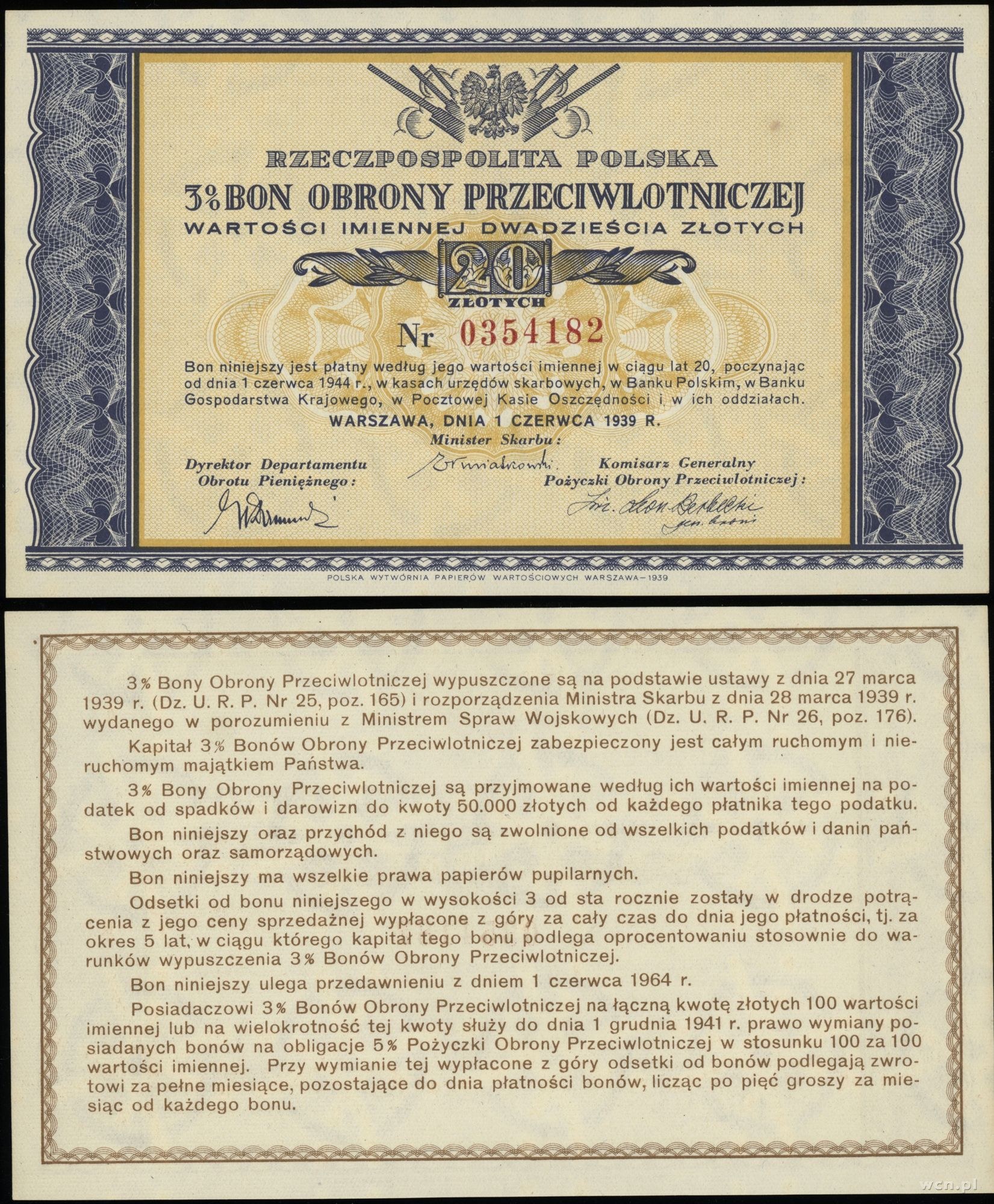 Bony na cele patriotyczne - Ministerstwo Skarbu - 3% Bony Obrony Przeciwlotniczej