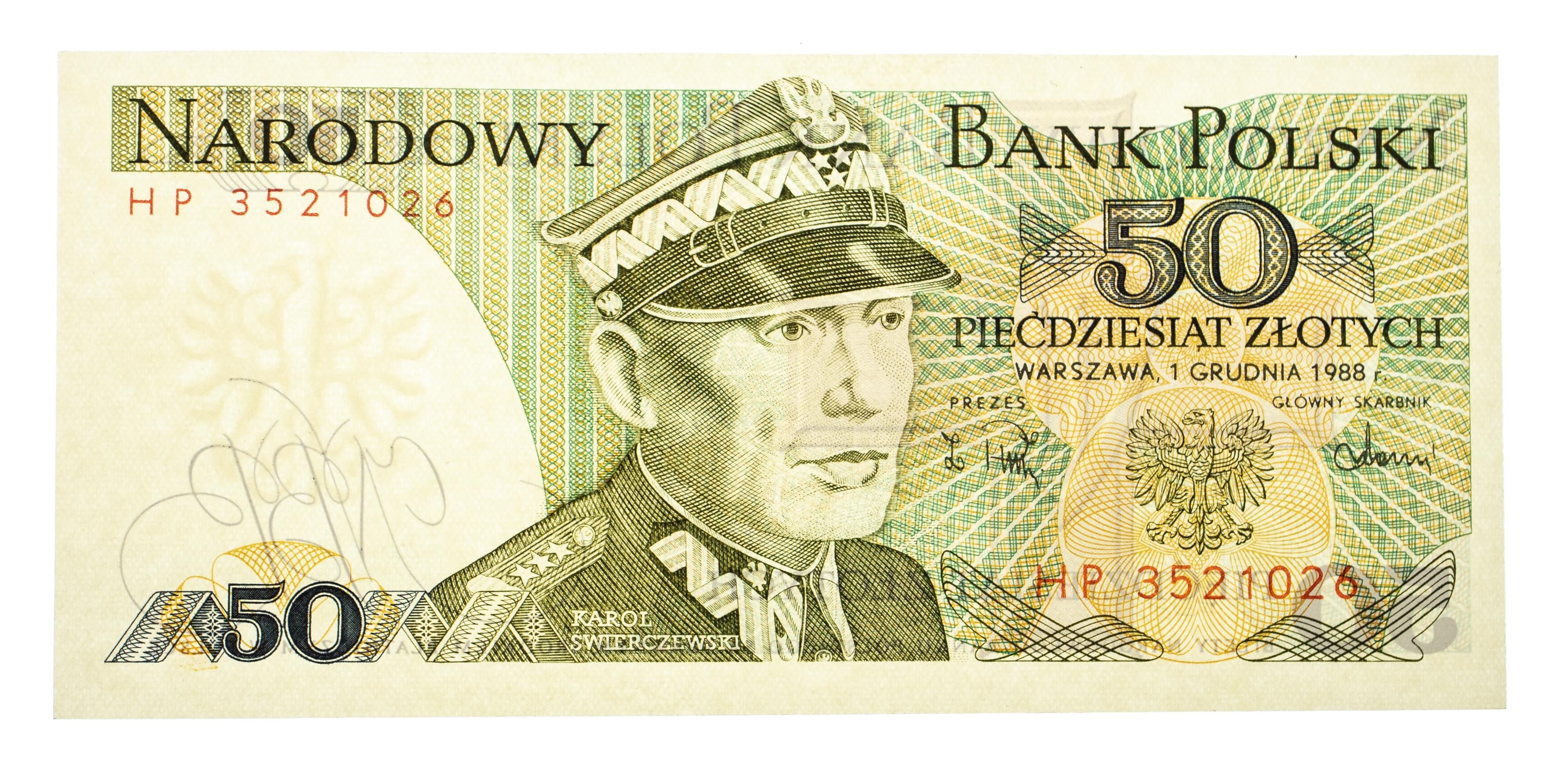 Bankowy stan zachowania. Minimalne ugięcie przy czapce generała. Seria HP 3521026.