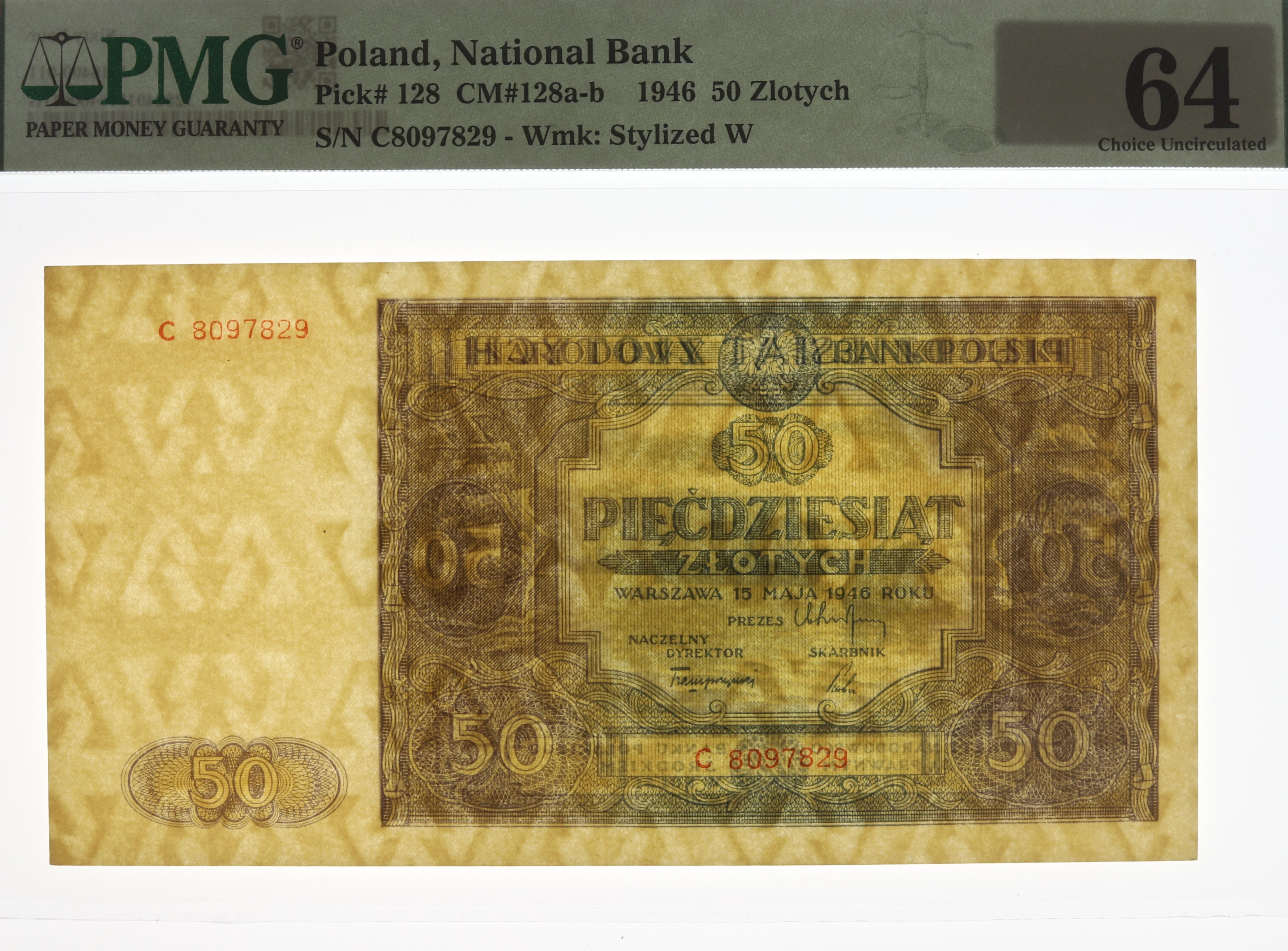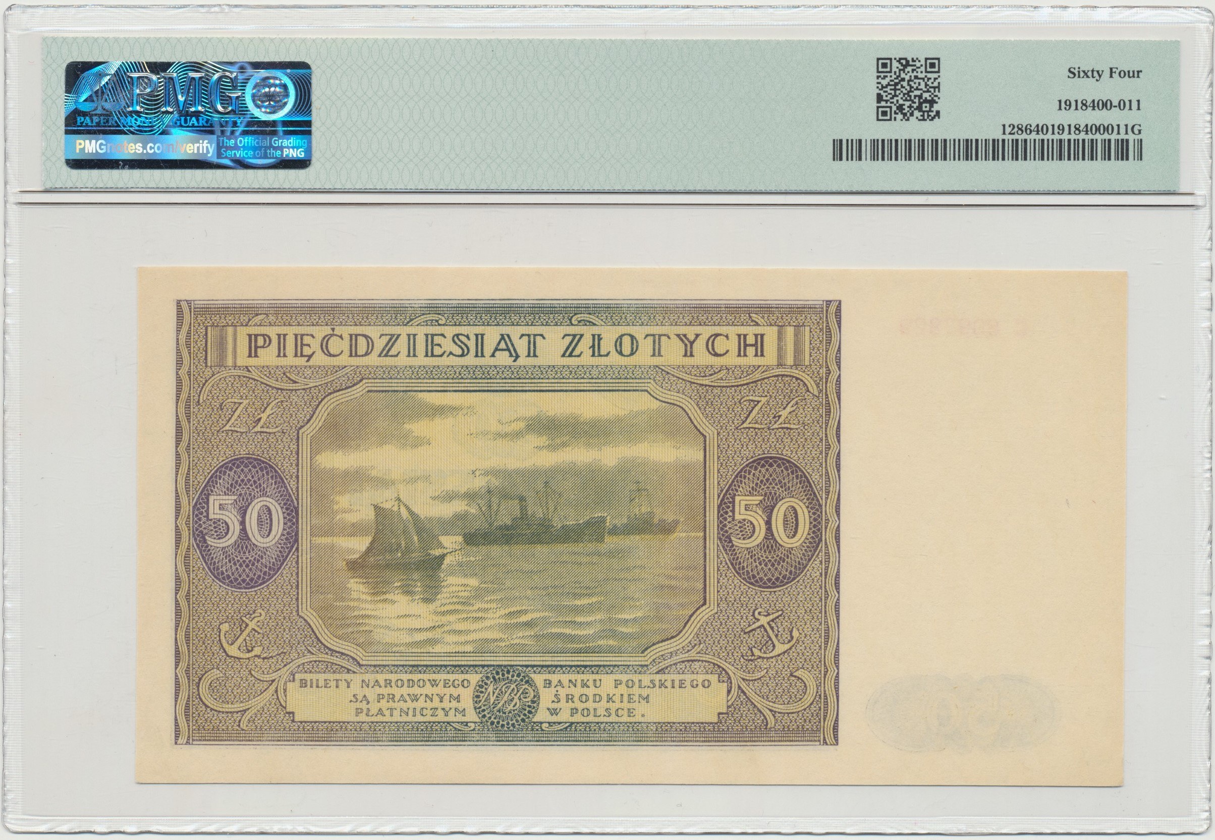 Doskonale zachowany banknot doceniony bardzo wysoką notą przez PMG - 64