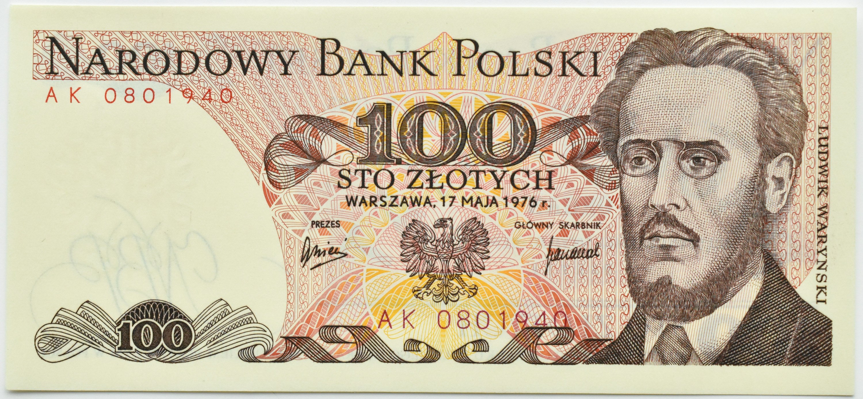 PRL, Ludwik Waryński, 100 złotych 1976, seria AK, UNC