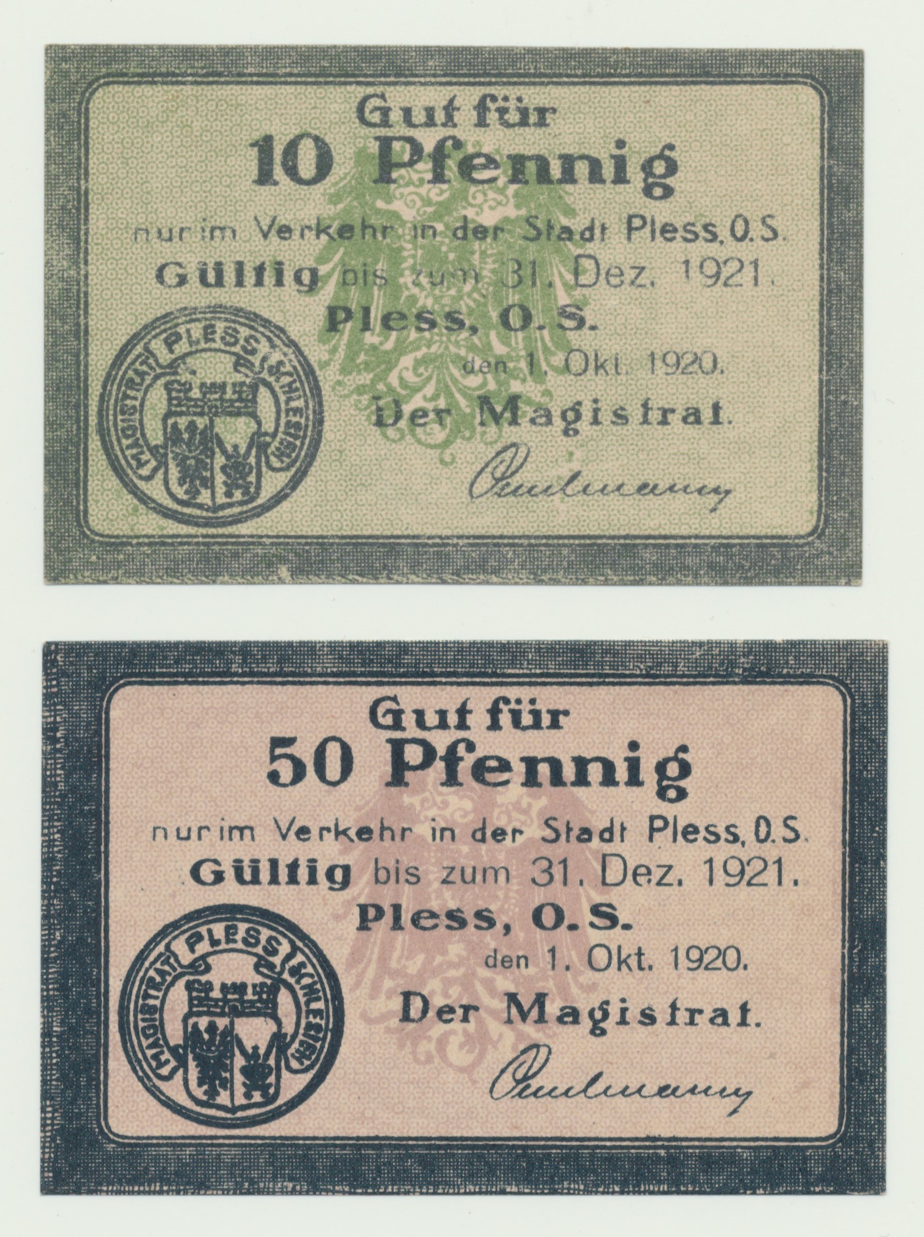 Pszczyna 10 i 50 fenigów 1920, zestaw 2 szt.