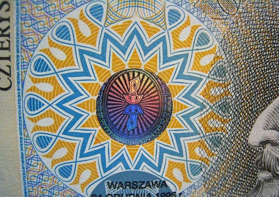 * zastosowanie druku farbą optycznie zmienną (gilosza zmienia kolory w zależności o kąta patrzenia – z zielonego poprzez żółty na czerwony) i wiele innych.