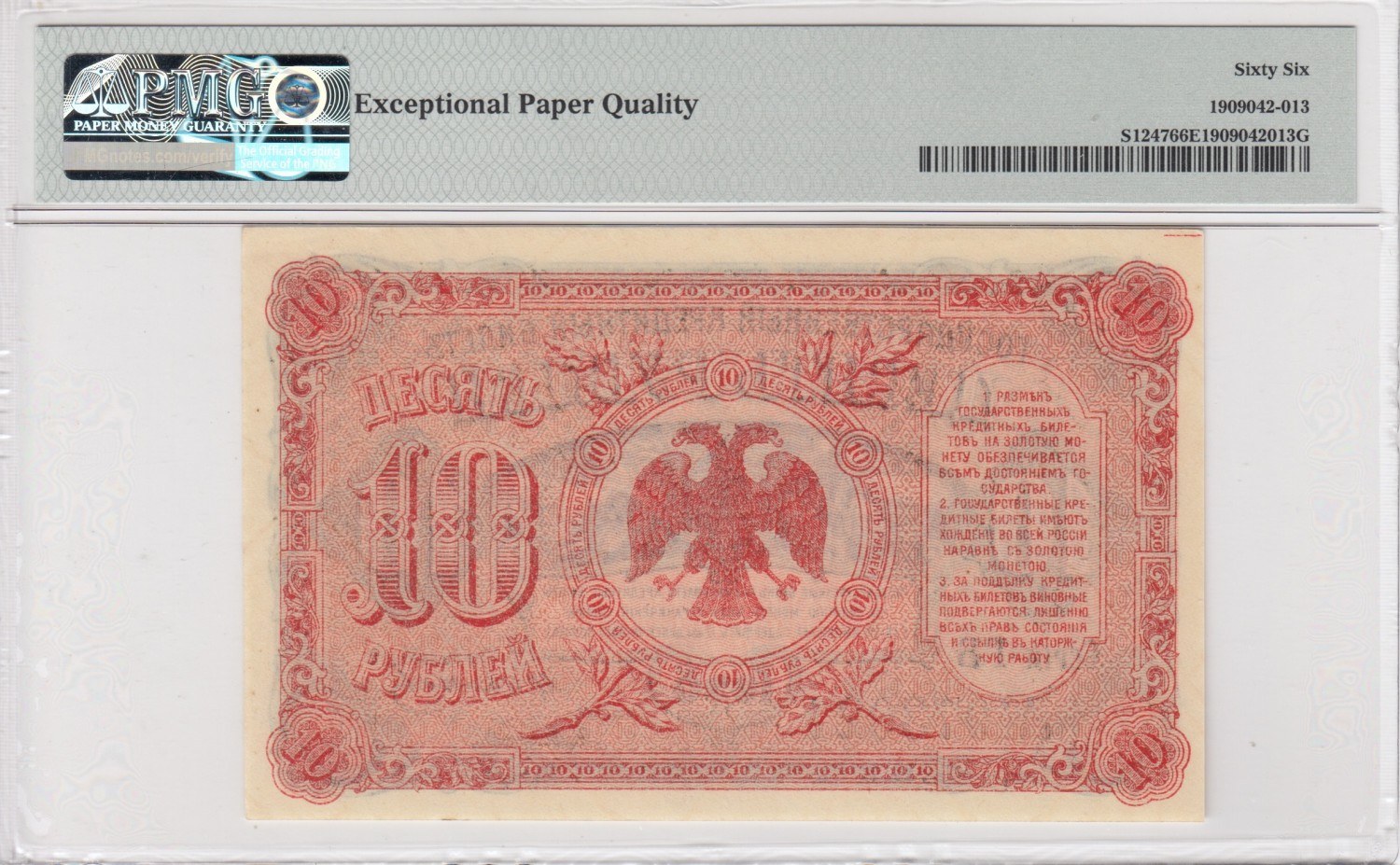 Russia (E. Siberia, Far East Provisional Gov't) 10 Rubles 1920 - PMG 66 EPQ Gem Uncirculated