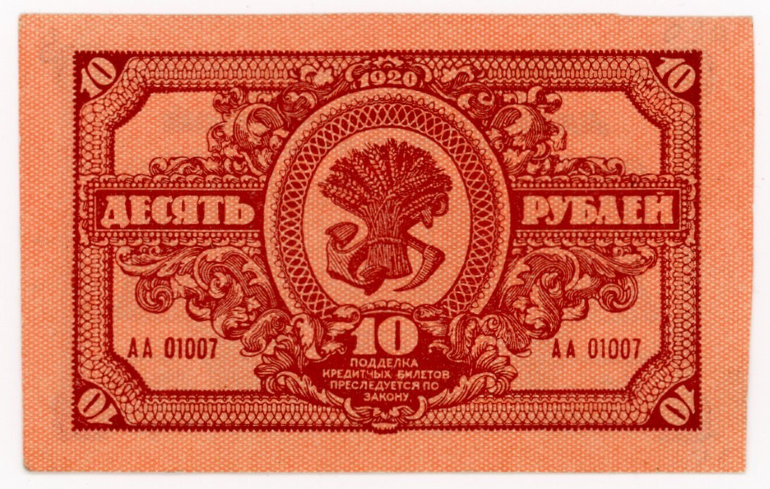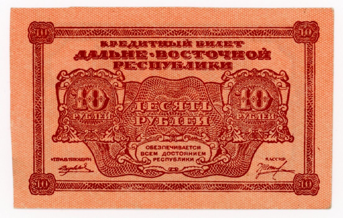 Rosja, Republika Dalekiego Wschodu, 10 rubli 1920. Stan zachowania 1. Bardzo dobry stan zachowania. Literatura: Pick S-1204
