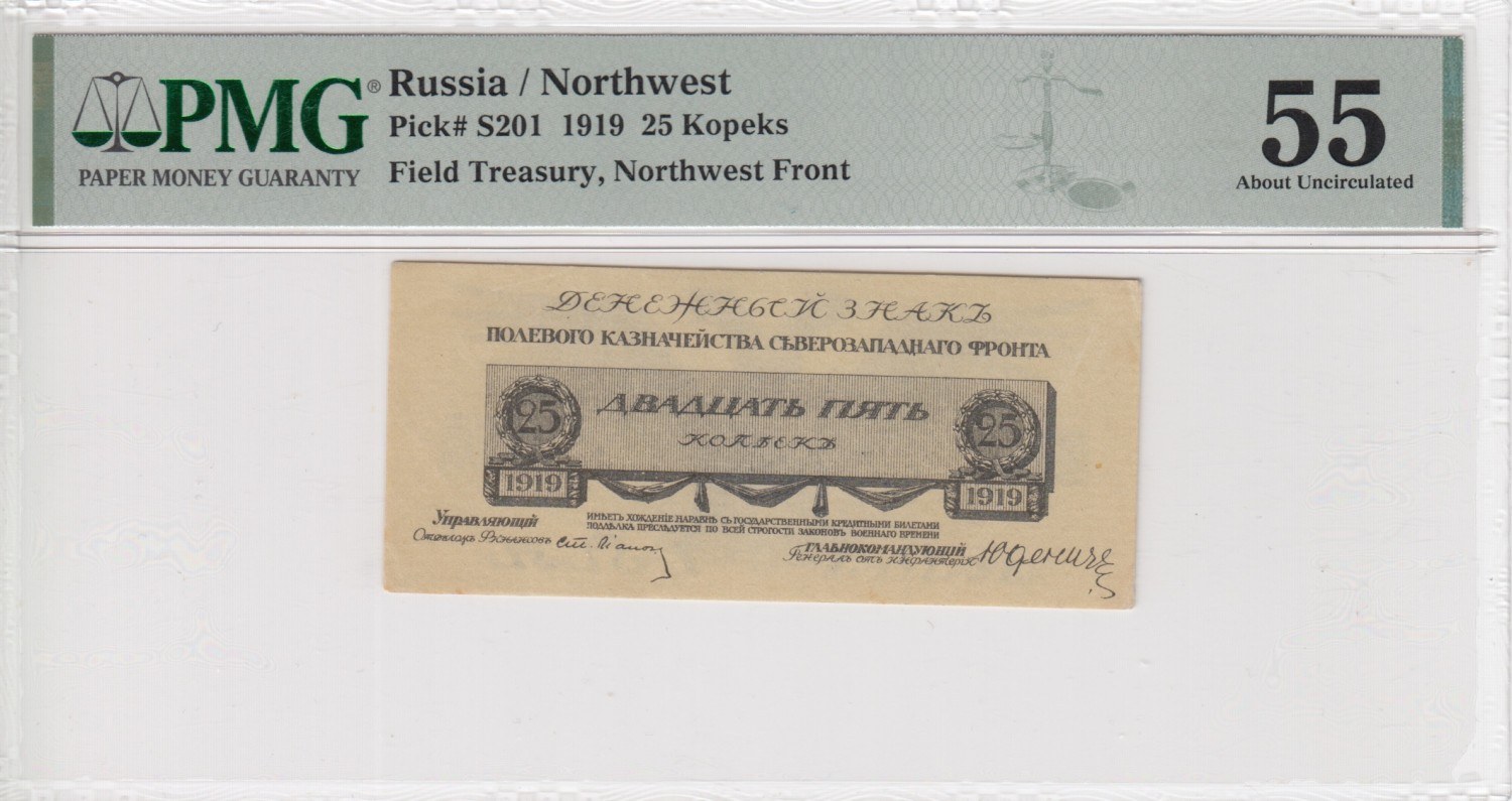 Russia (Northwest Russia) 25 Kopeks 1919 - PMG 55 About Uncirculated