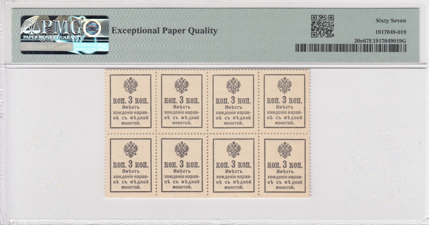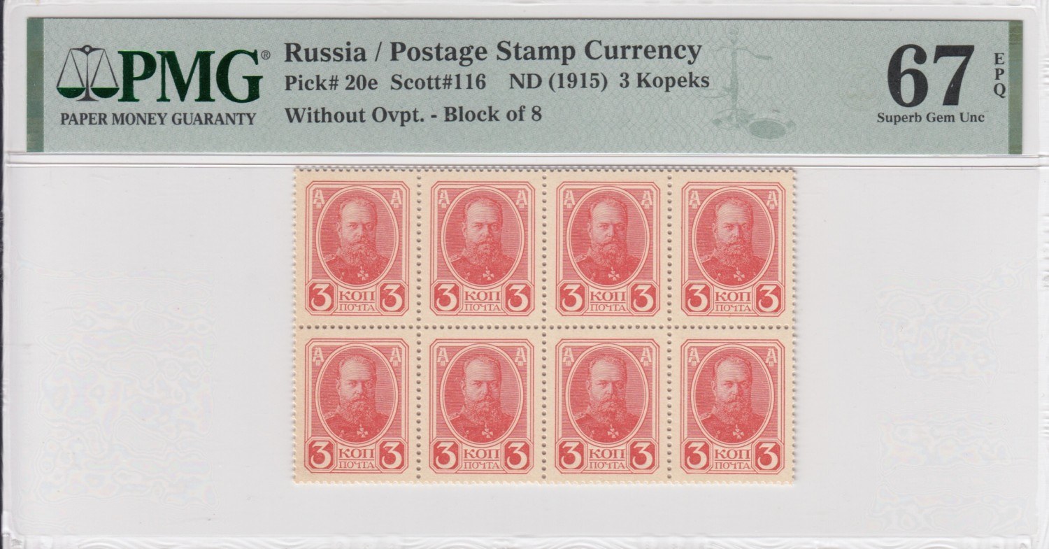 Russia (Postage Stamp Currency) 3 Kopecks ND (1915) - PMG 67 EPQ SuperbGem Unc