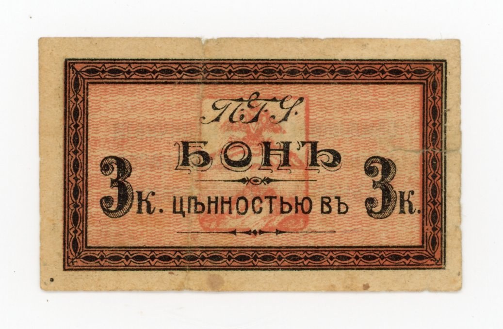 Rosja, Piatigorsk, 3 ruble b.d. Stan zachowania 4. Niewielkie naddarcie z prawej strony.