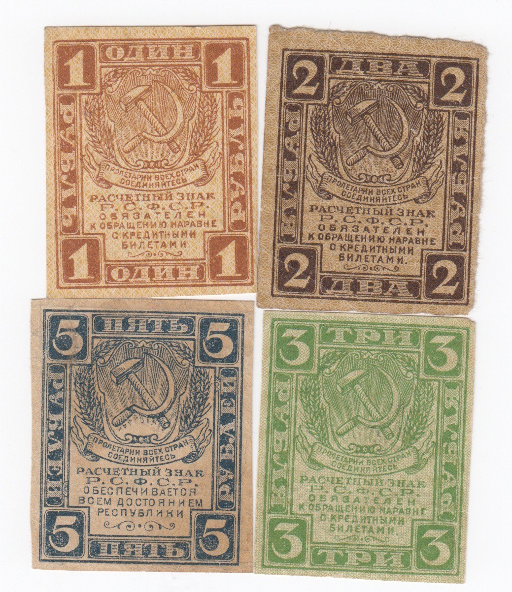Russia (RSFSR) 5, 3, 2 Roubles & 1 Rouble ND (1919) (4)