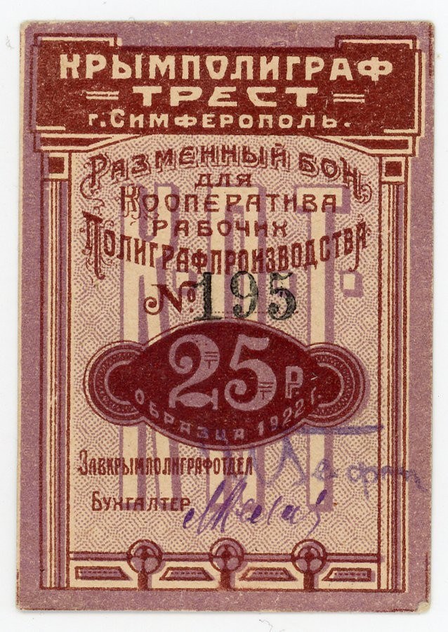 Russia - Ukraine Simferopol Crimeapolygraphtrest 25 Roubles 1922