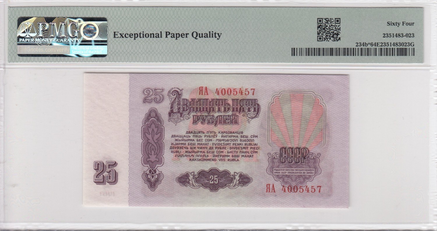 Russia (USSR, State Bank) 25 Rubles 1961 - Replacement - PMG 64 EPQ Choice Uncirculated