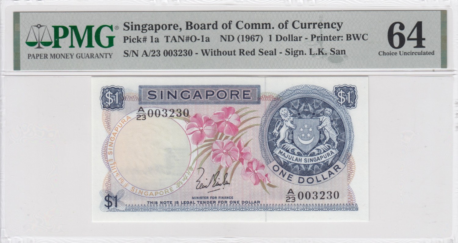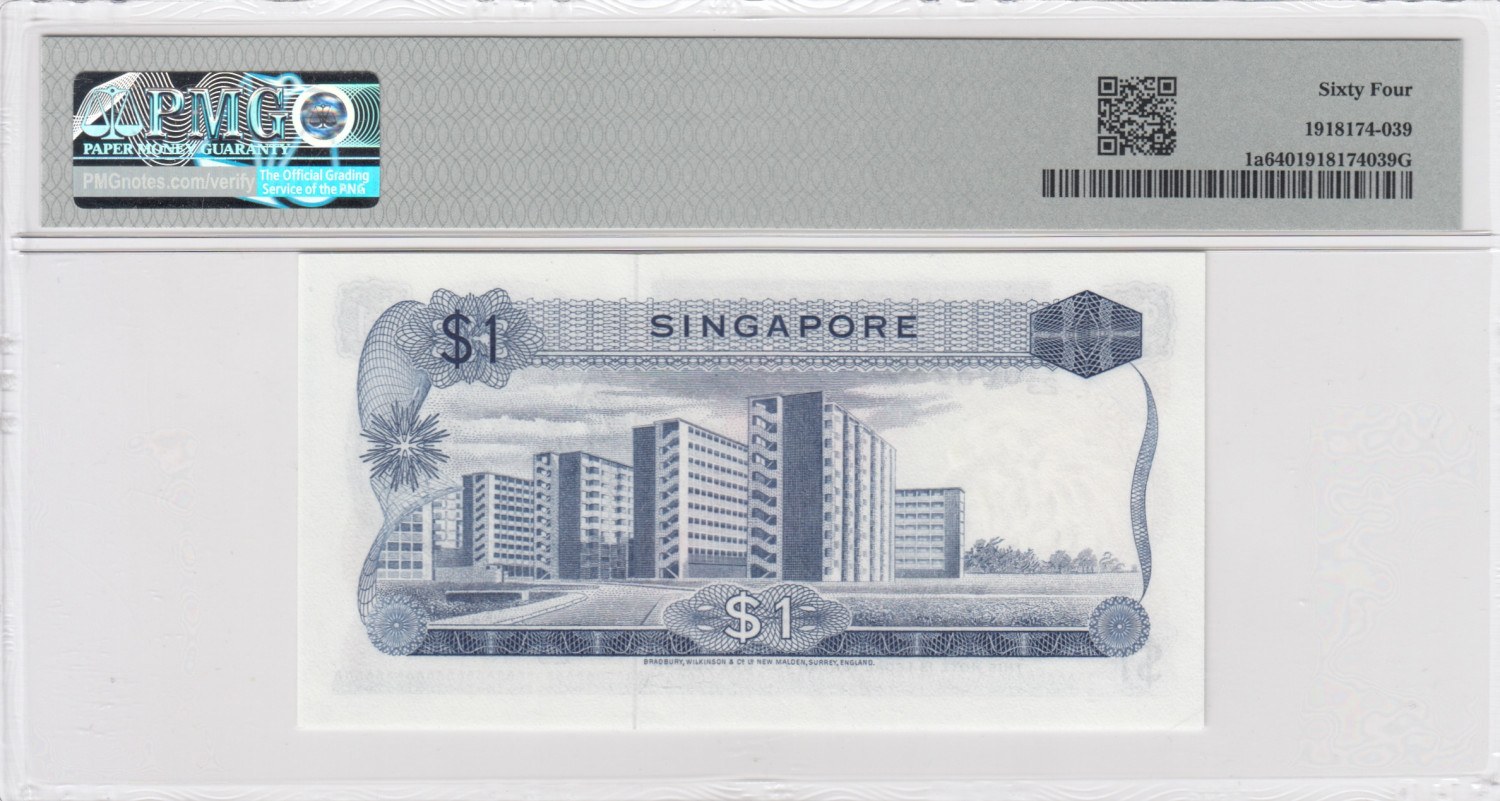Singapore 1 Dollar 1967 - PMG 64 Choice Uncirculated