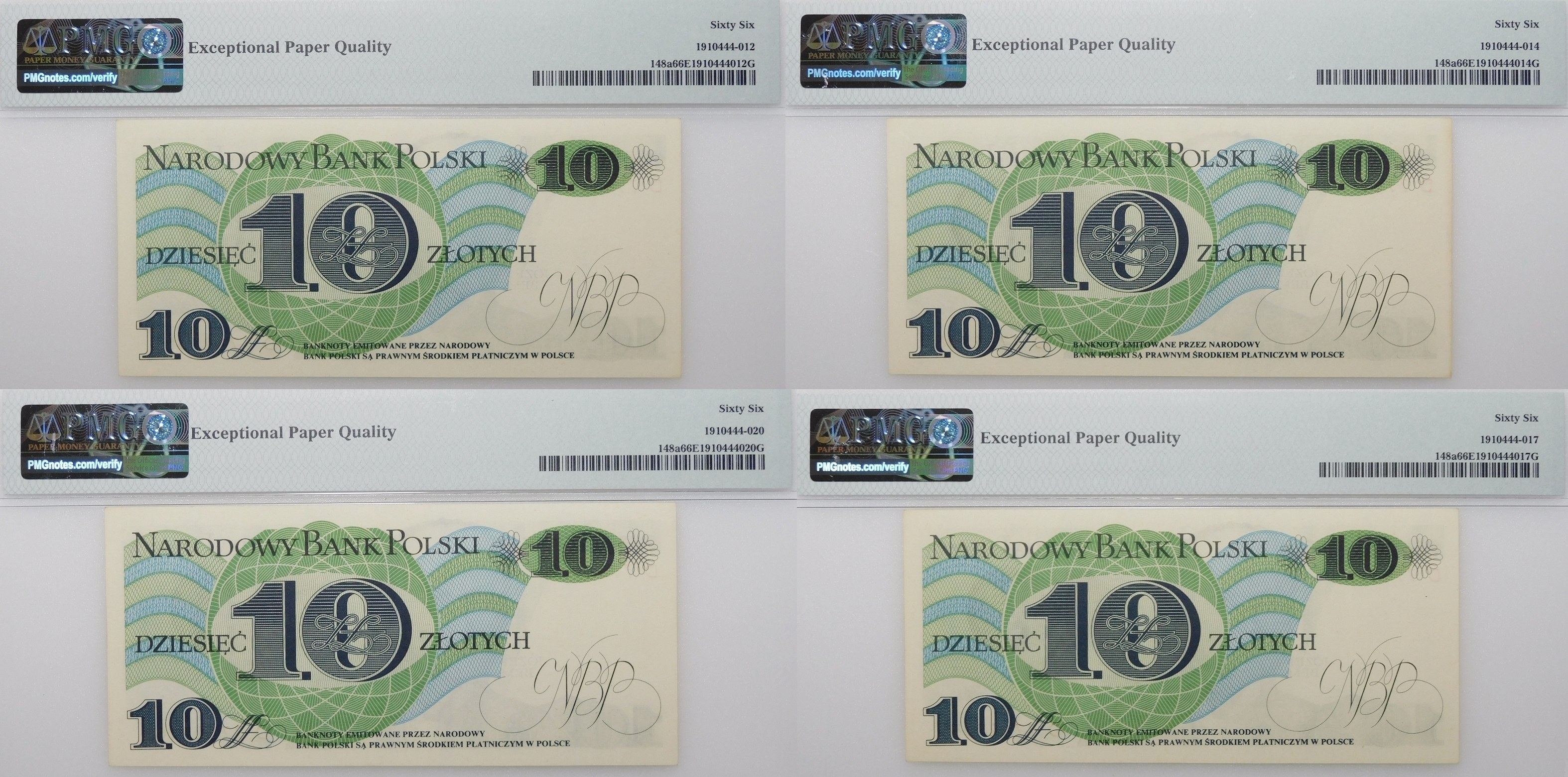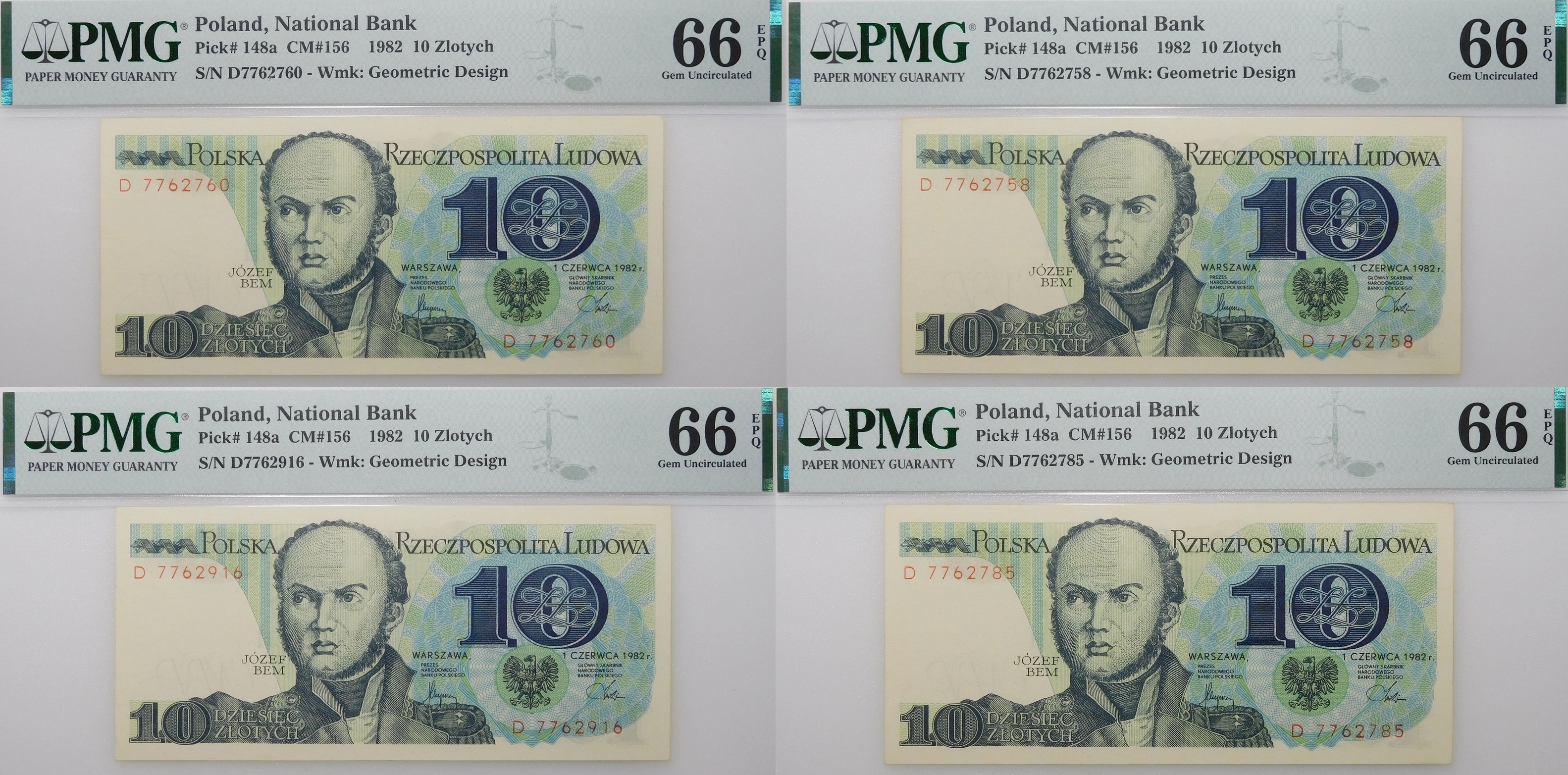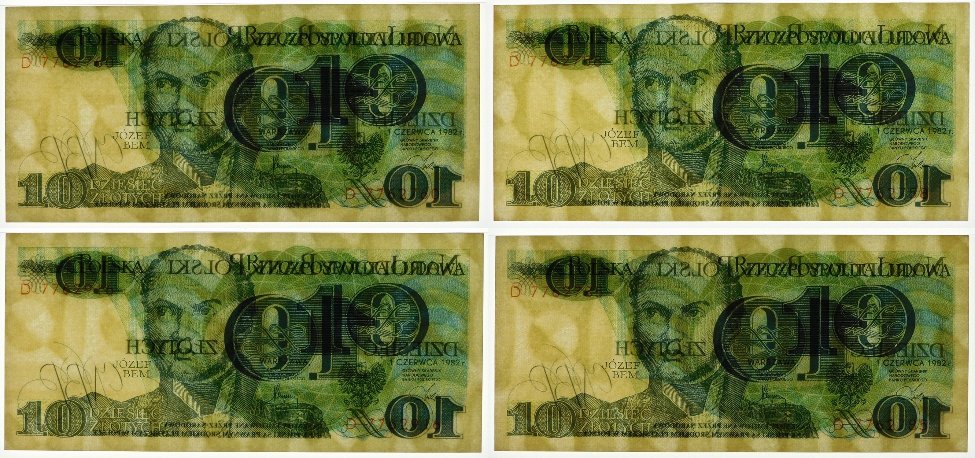 Zestaw czterech banknotów 10 złotych 1982, 4 x ser. D