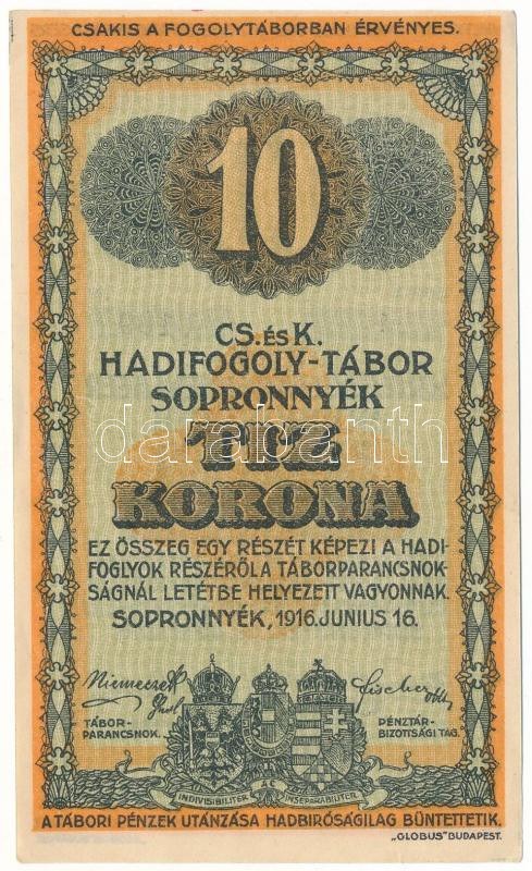 Sopronnyék / Hadifogolytábor 1916. június 16. 10K arab sorozat- és sorszámmal "1 0109" T:AU, sarokhajlások, pici szakadás / Hungary / Sopronnyék (Neckenmarkt) / POW Camp 1916.06.16. 10 Korona with arabic series- and serial number "1 0109" T:AU, folded corners, tiny tear Adamo HHP-1.6