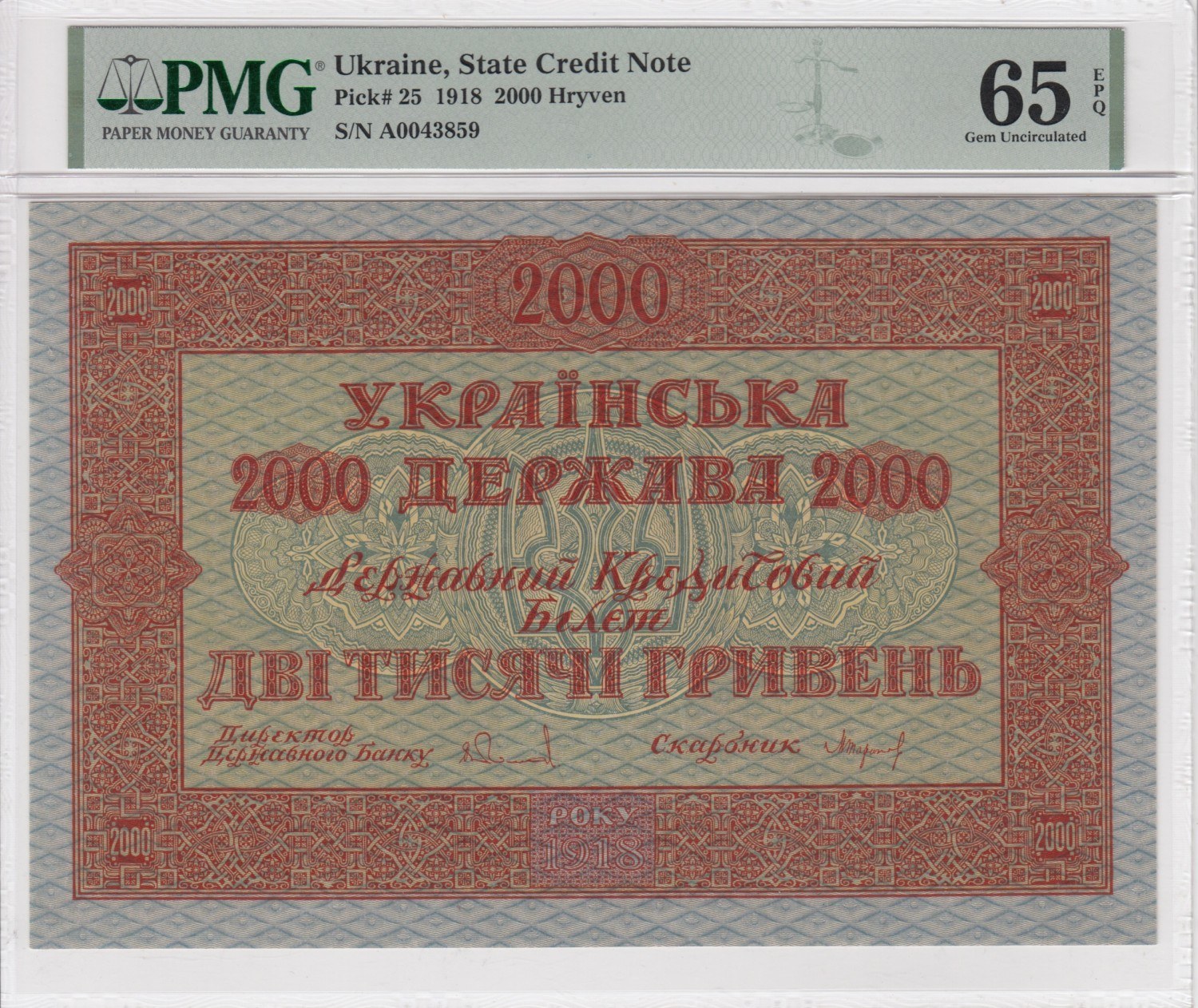 Ukraine (State Credit Note) 2000 Hryven 1918 - PMG 65 EPQ Gem Uncirculated