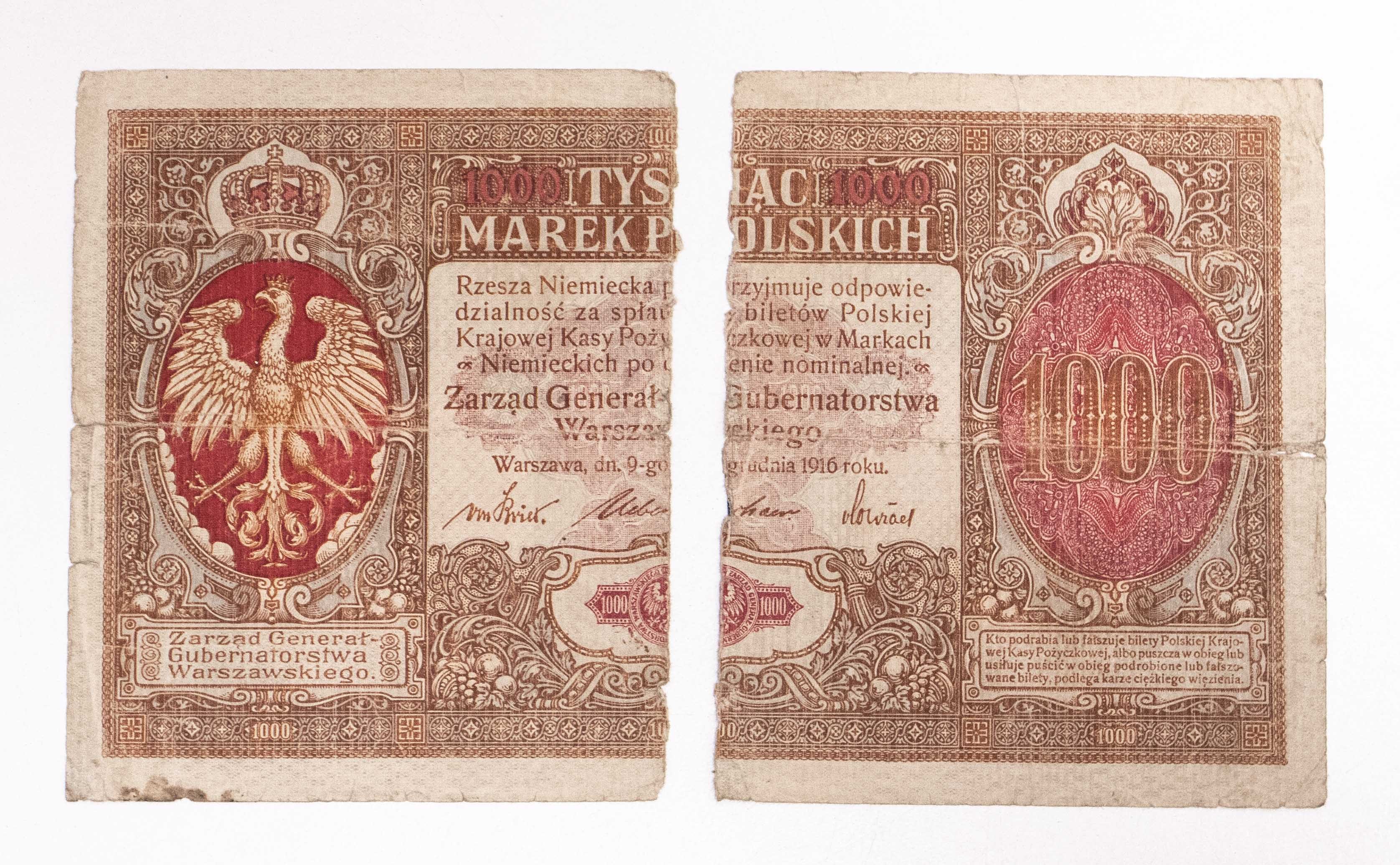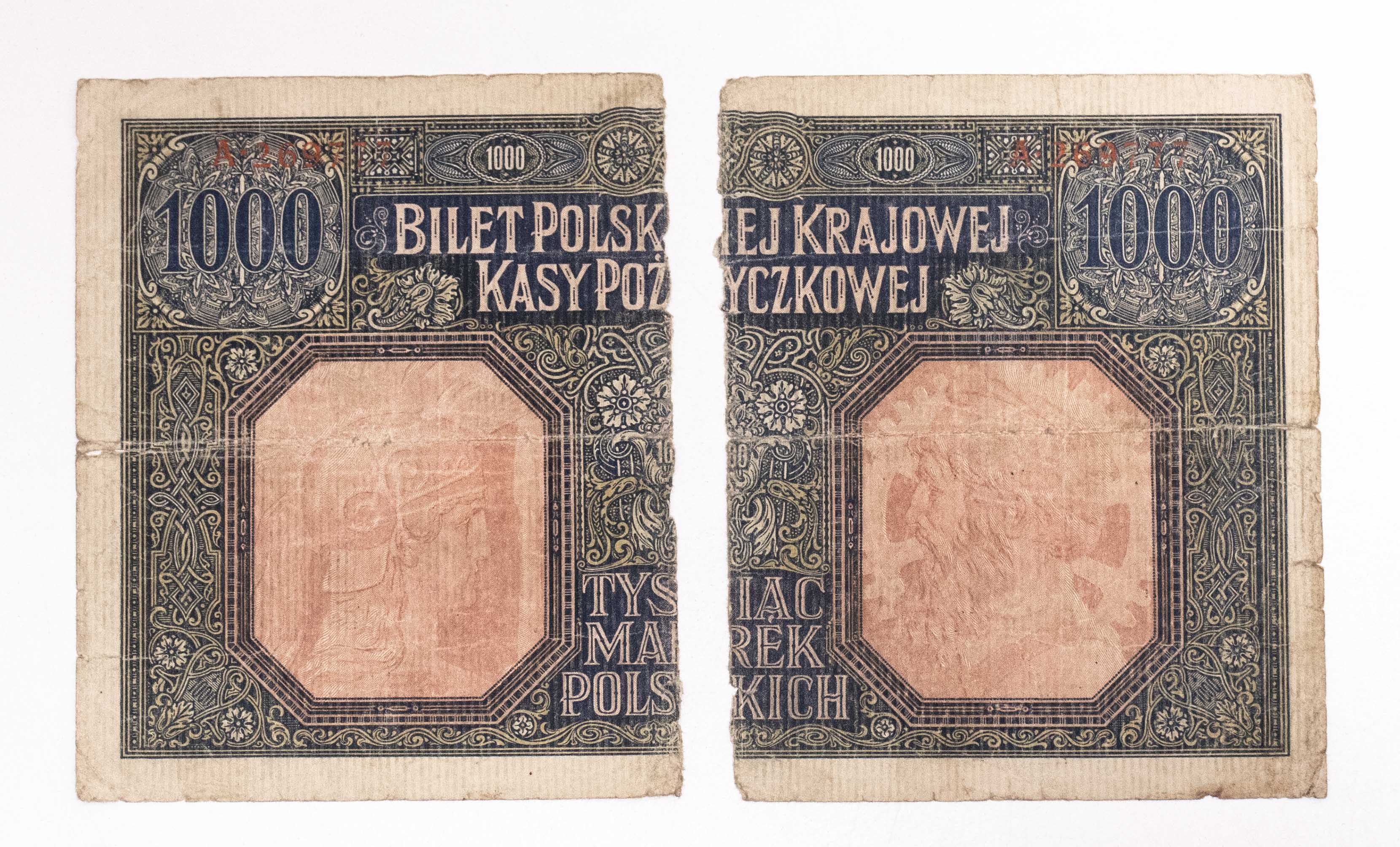 Wielokrotnie złamany i gięty, papier dość sztywny, przedarty w pionie. Seria A 269777. Odmiana Generał.