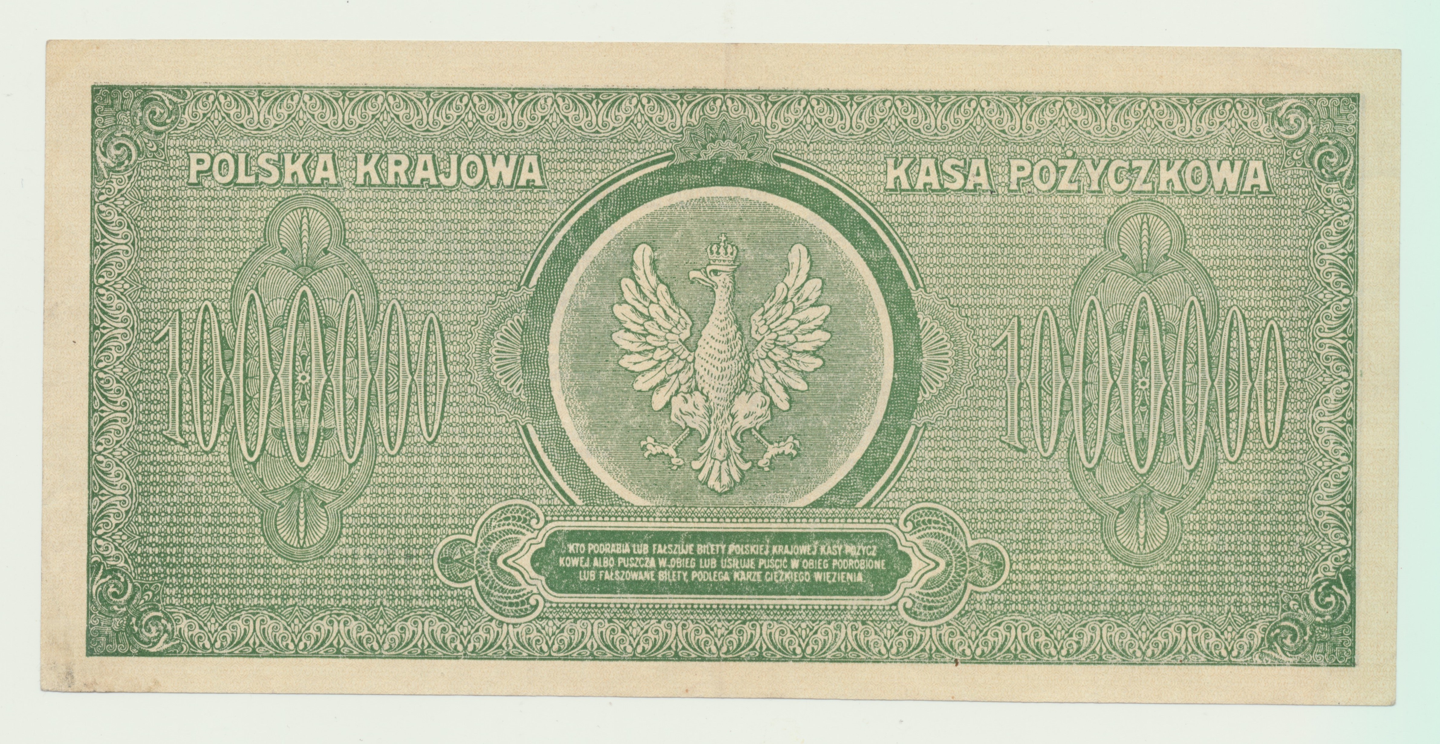 W tym stanie bardzo rzadki banknot. Złamany w pionie, złamania czubeczka dolnego narożnika, papier posiada pełną sztywność, ogólna prezencja bardzo dobra.