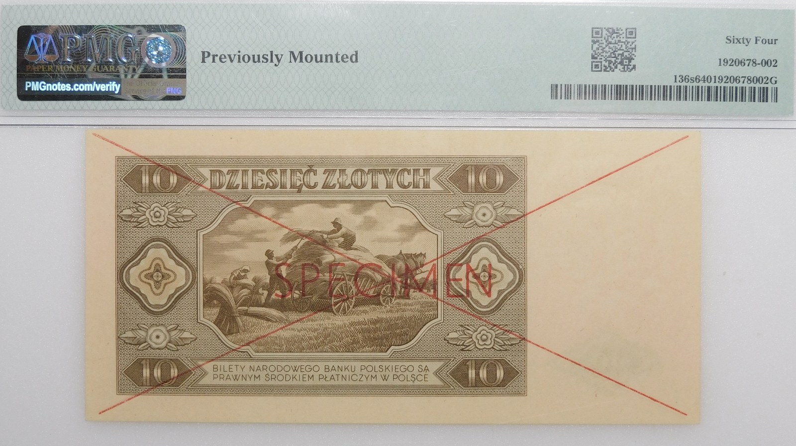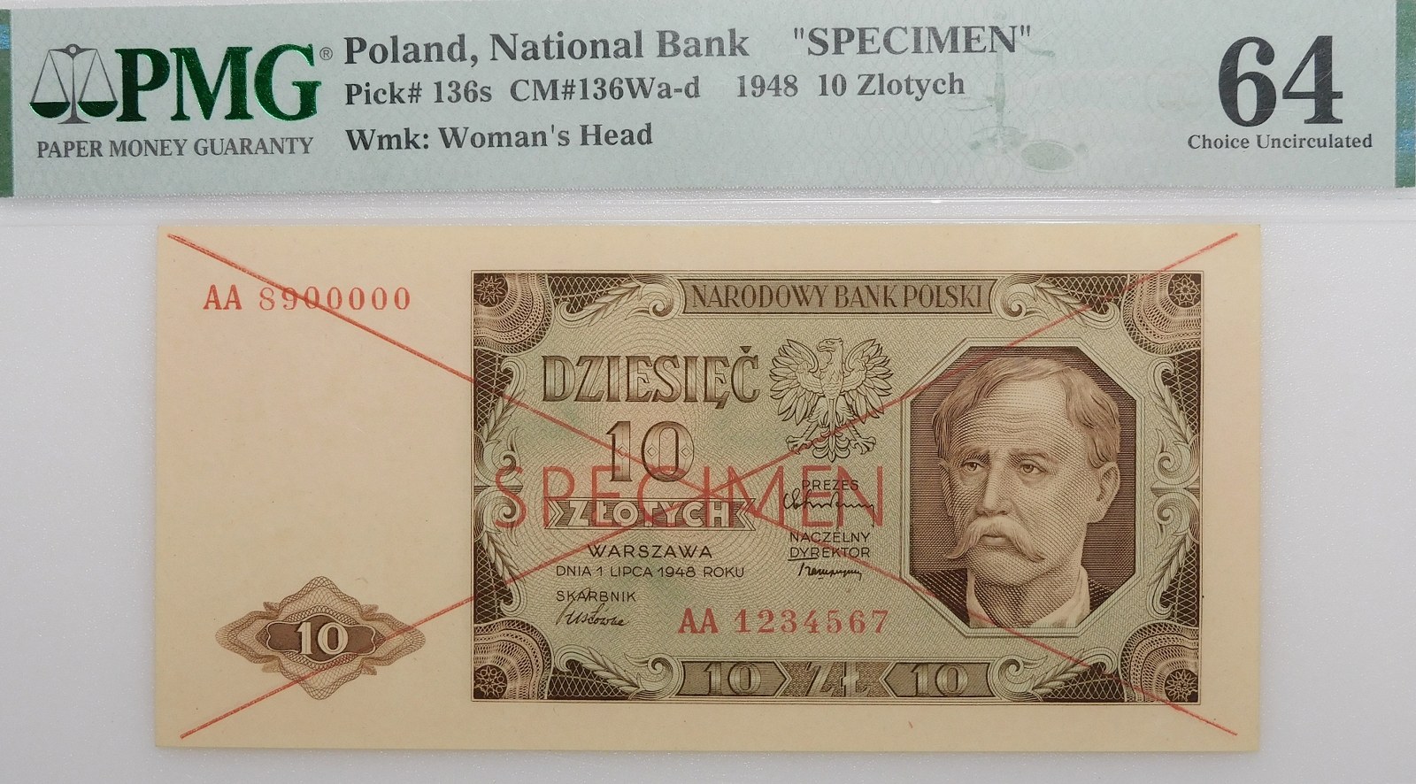 Banknot 10 złotych 1948 SPECIMEN - seria AA