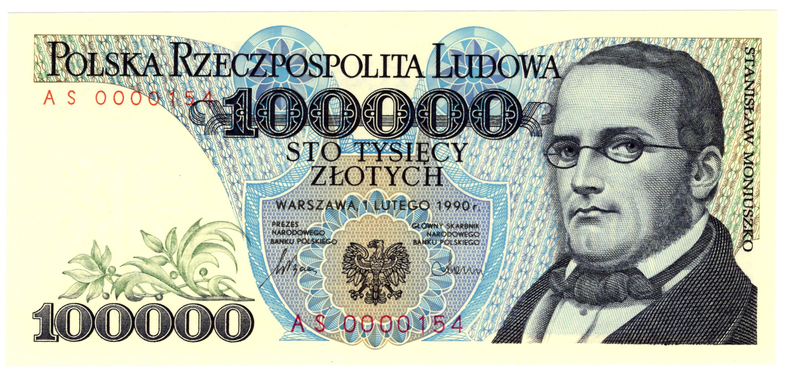 100 000 Złotych 1990, seria AS - niski numer AS0000154