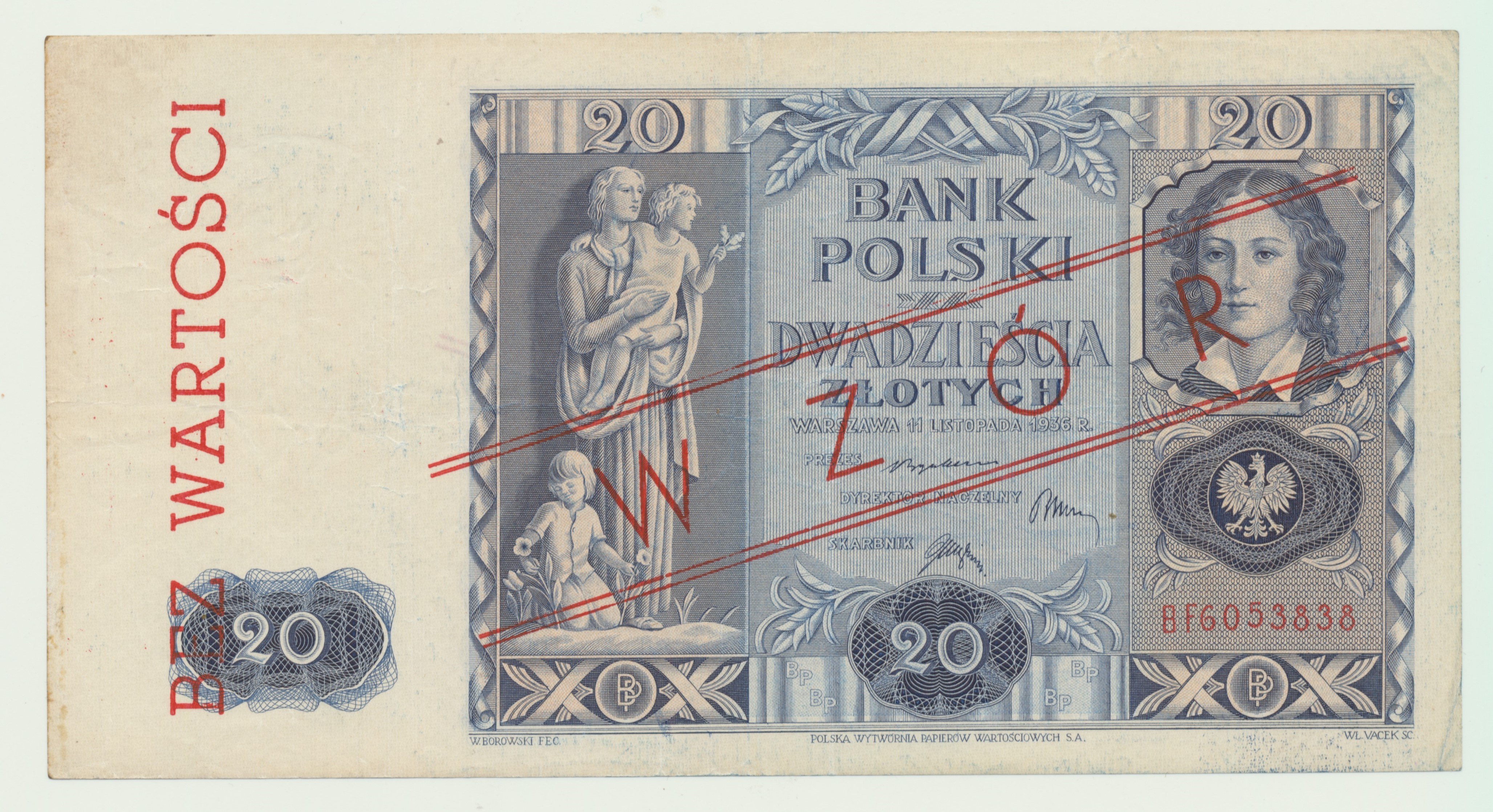 20 złotych 1936, ser. BF, numeracja bieżąca, WZÓR