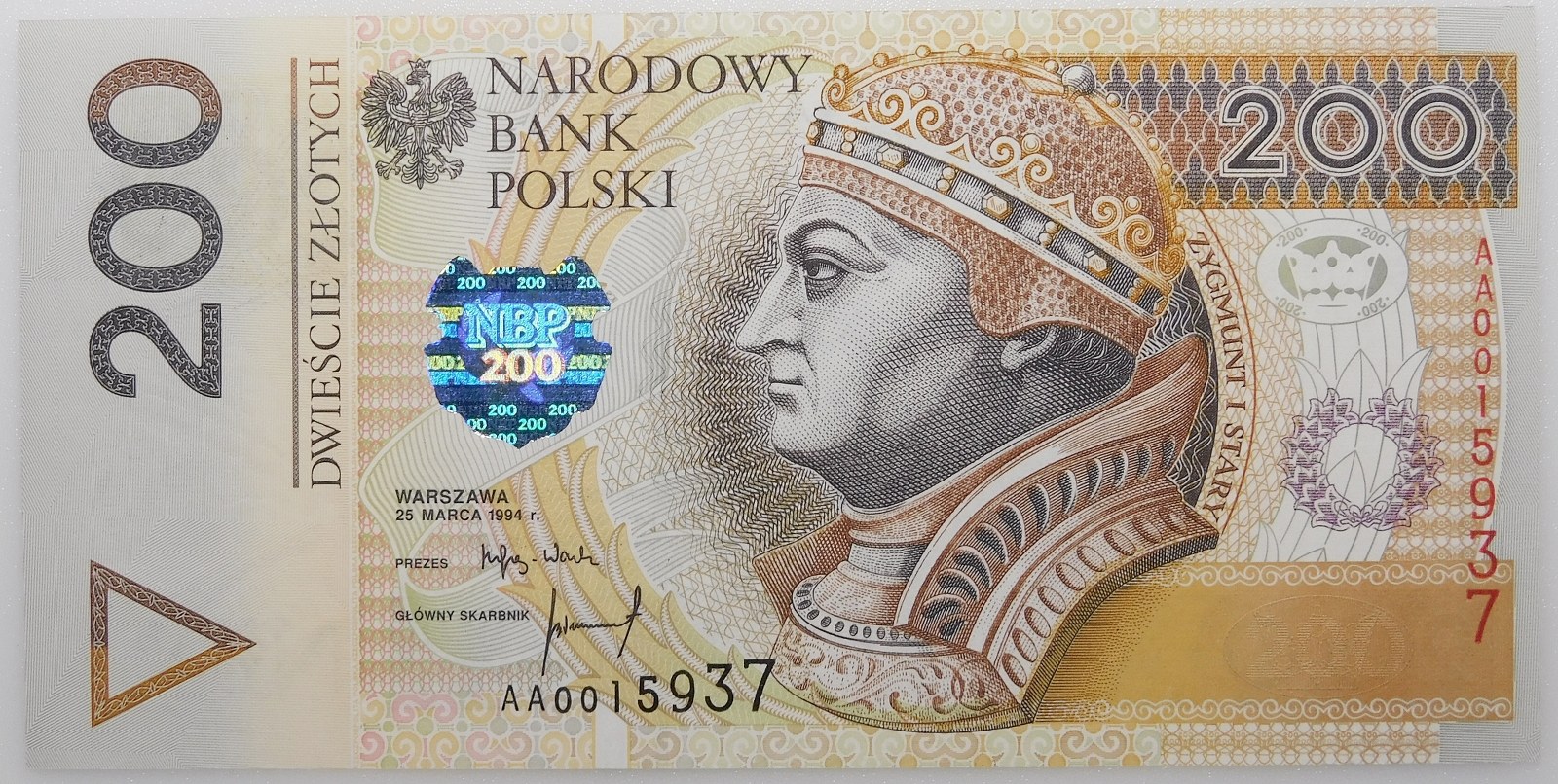 Banknot 200 złotych 1994, ser. AA - pierwsza seria