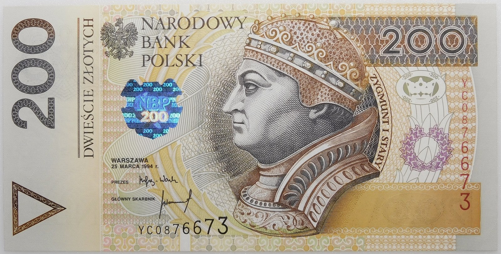 Banknot 200 złotych 1994, ser. YC - seria zastępcza