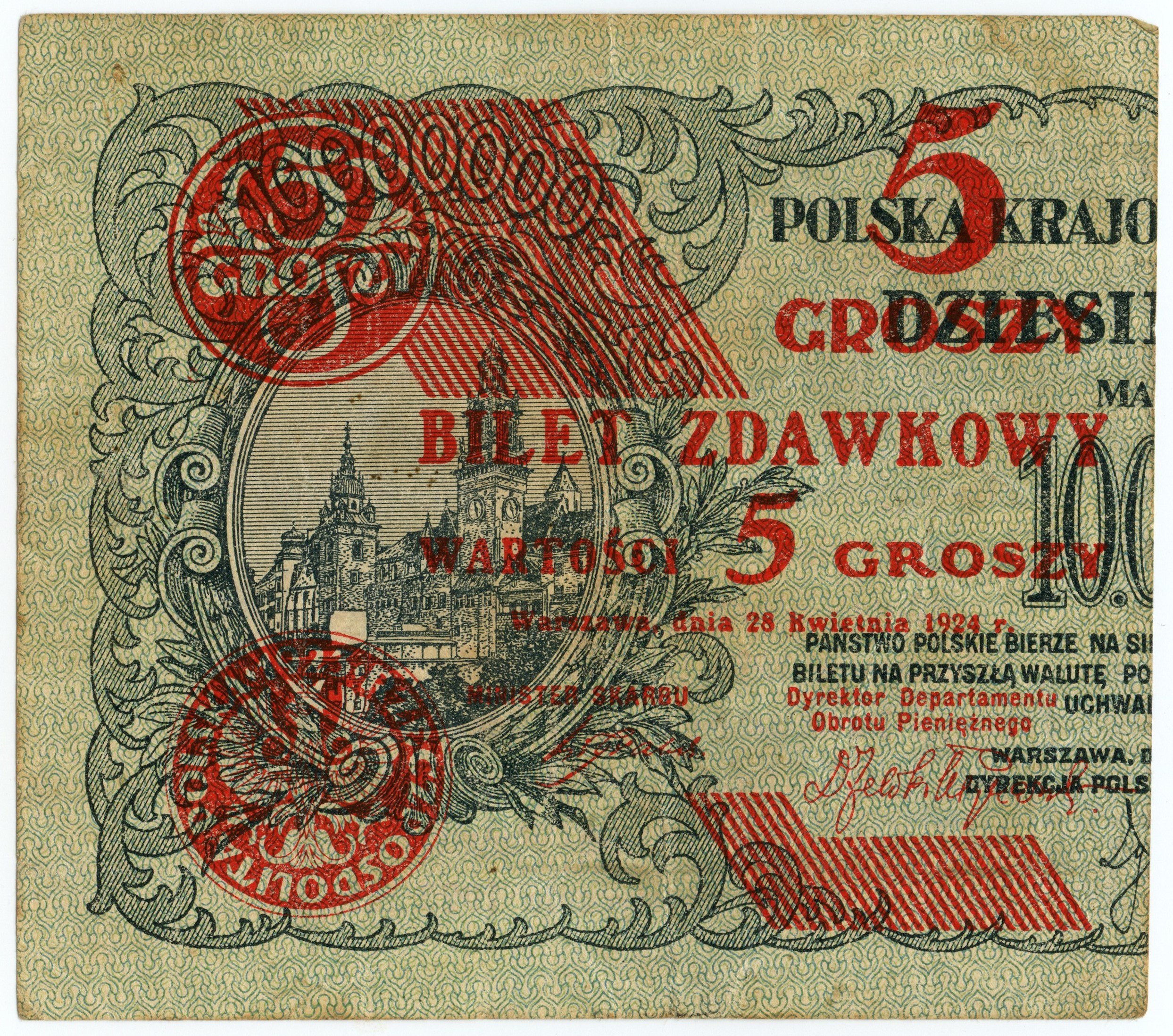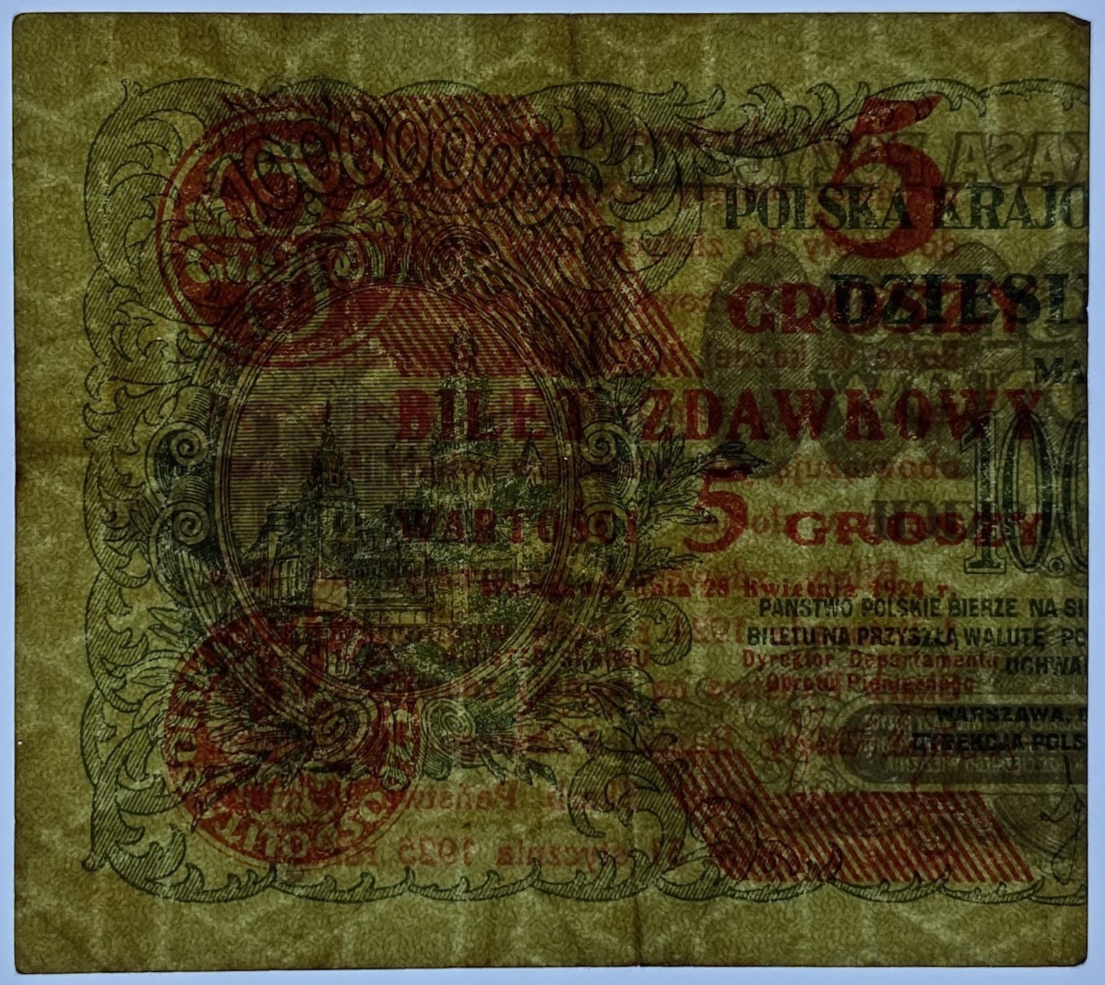 5 groszy 1924 - lewa połowa