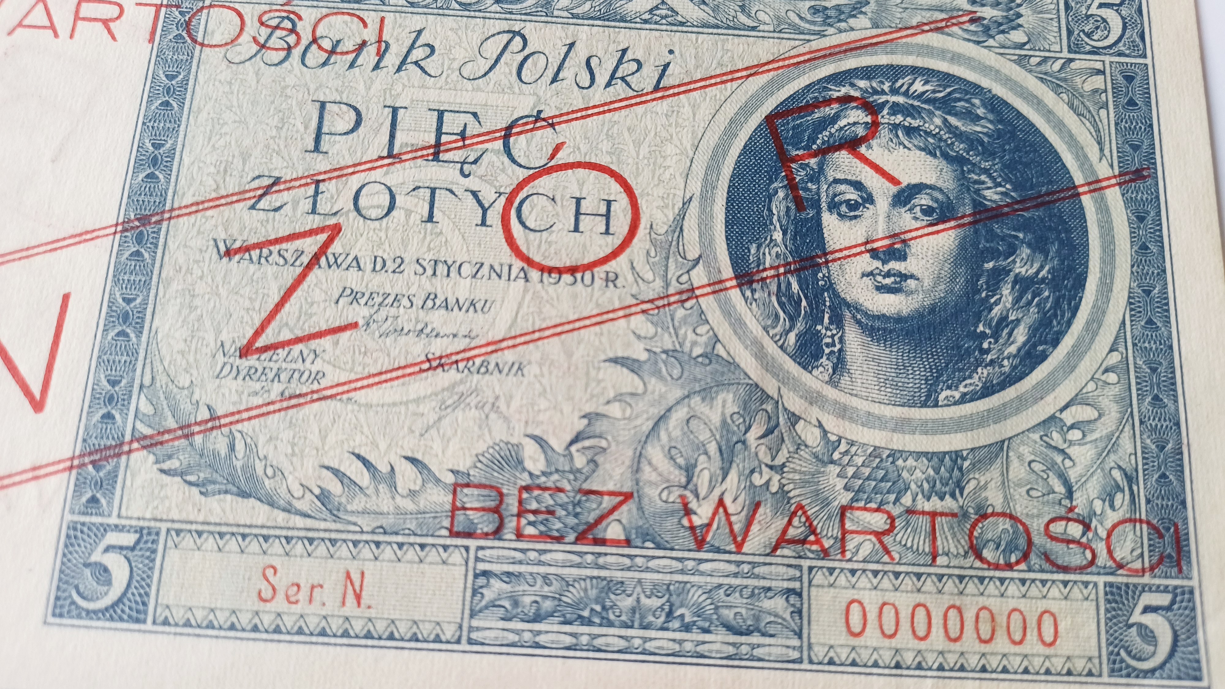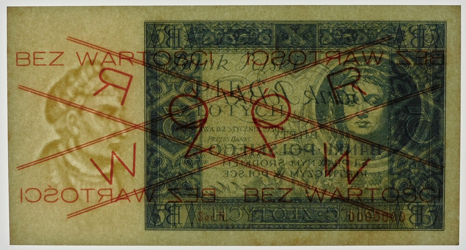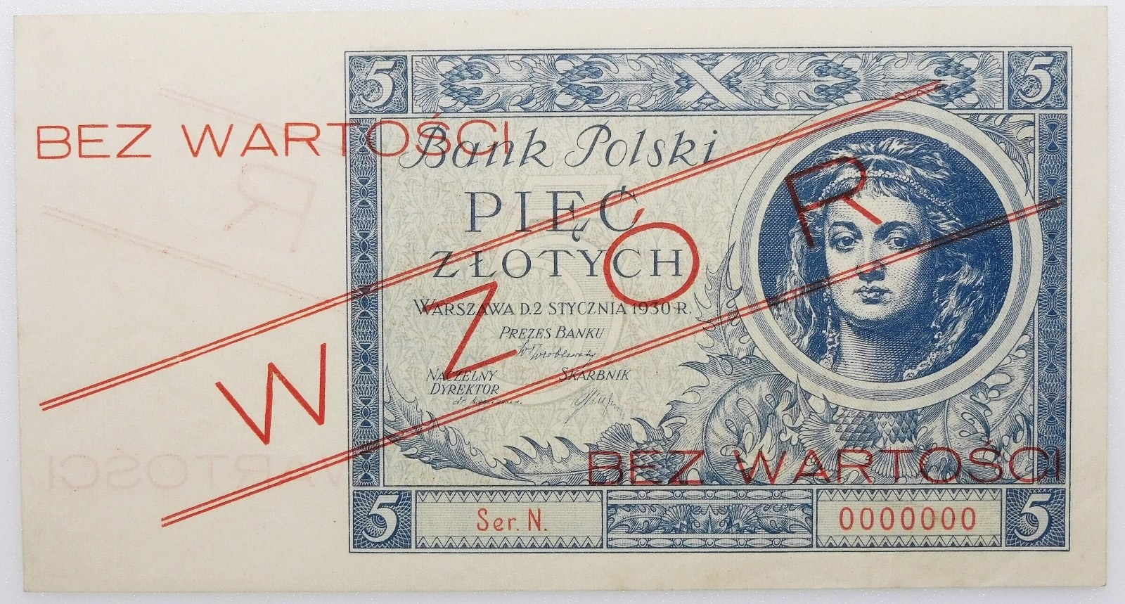 Banknot 5 złotych 1930 WZÓR , serii N. , banknotu zerowa: 0000000