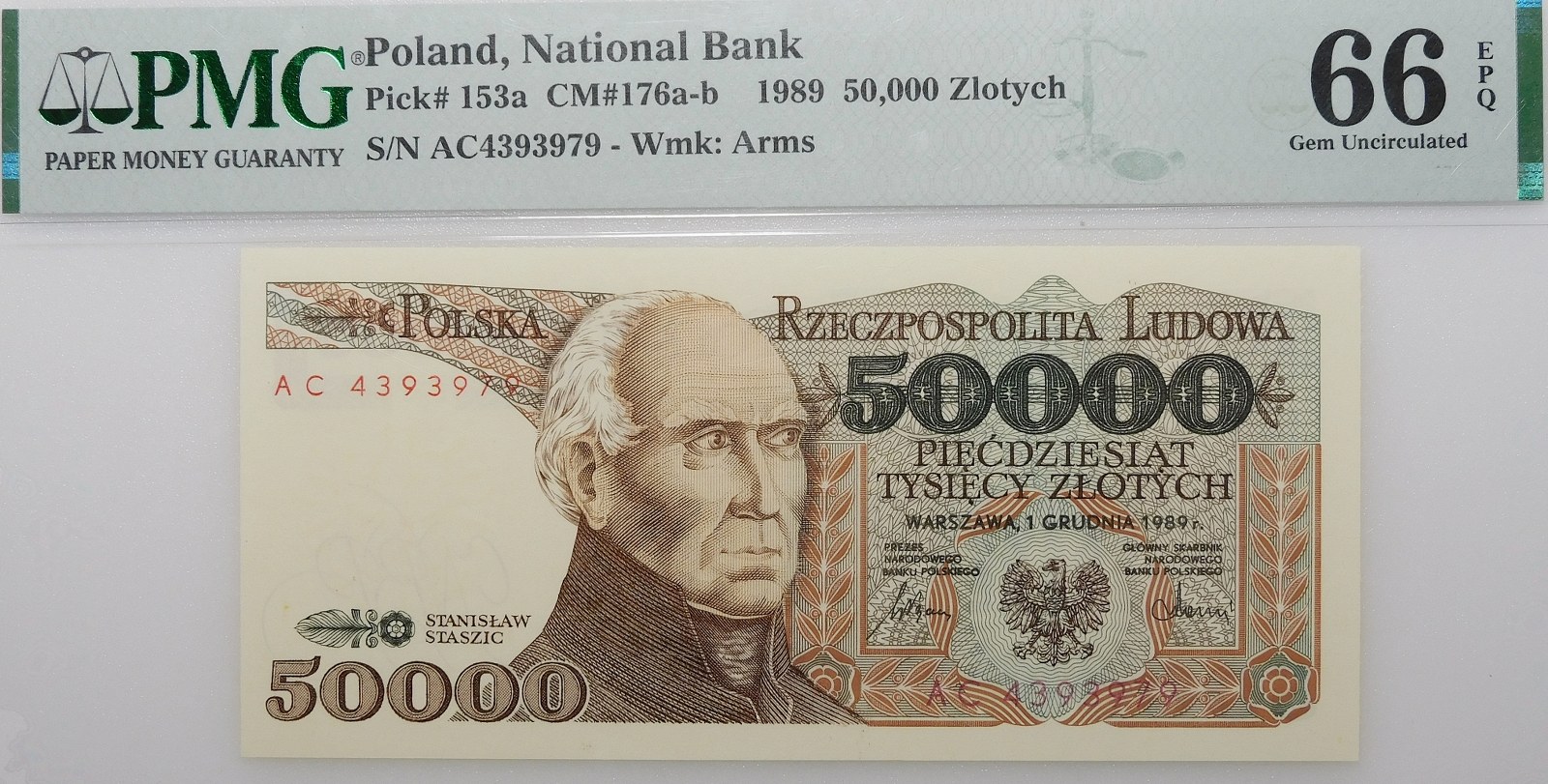 Atrakcyjny egzemplarz, potwierdzony wysoką notą gradingową PMG, z adnotacją EPQ świadczącą o wyjątkowej jakości papieru.