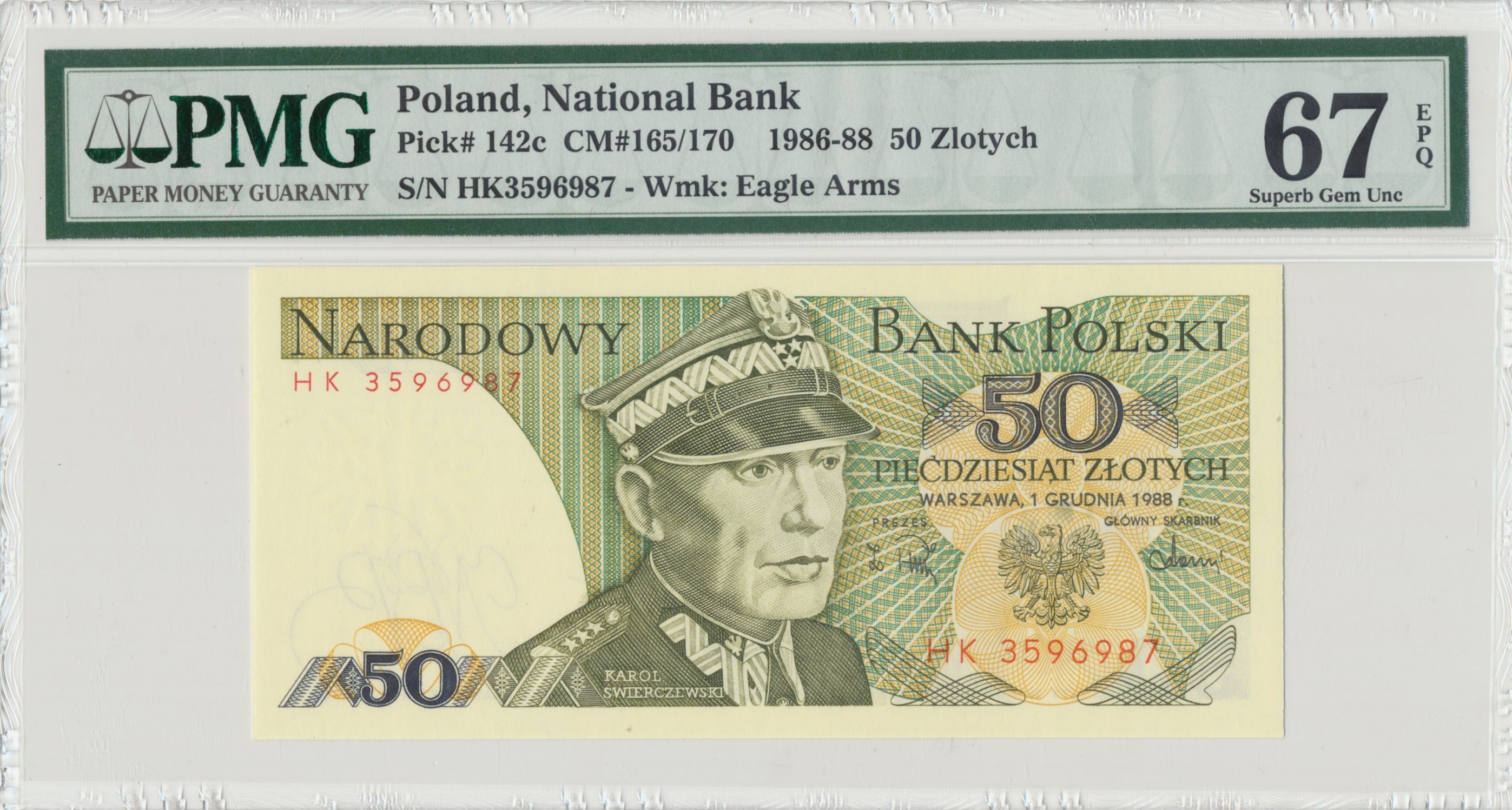 Wyśmienicie zachowany banknot o idealnej żywej kolorystyce druku doceniony wysoką notą przez PMG.