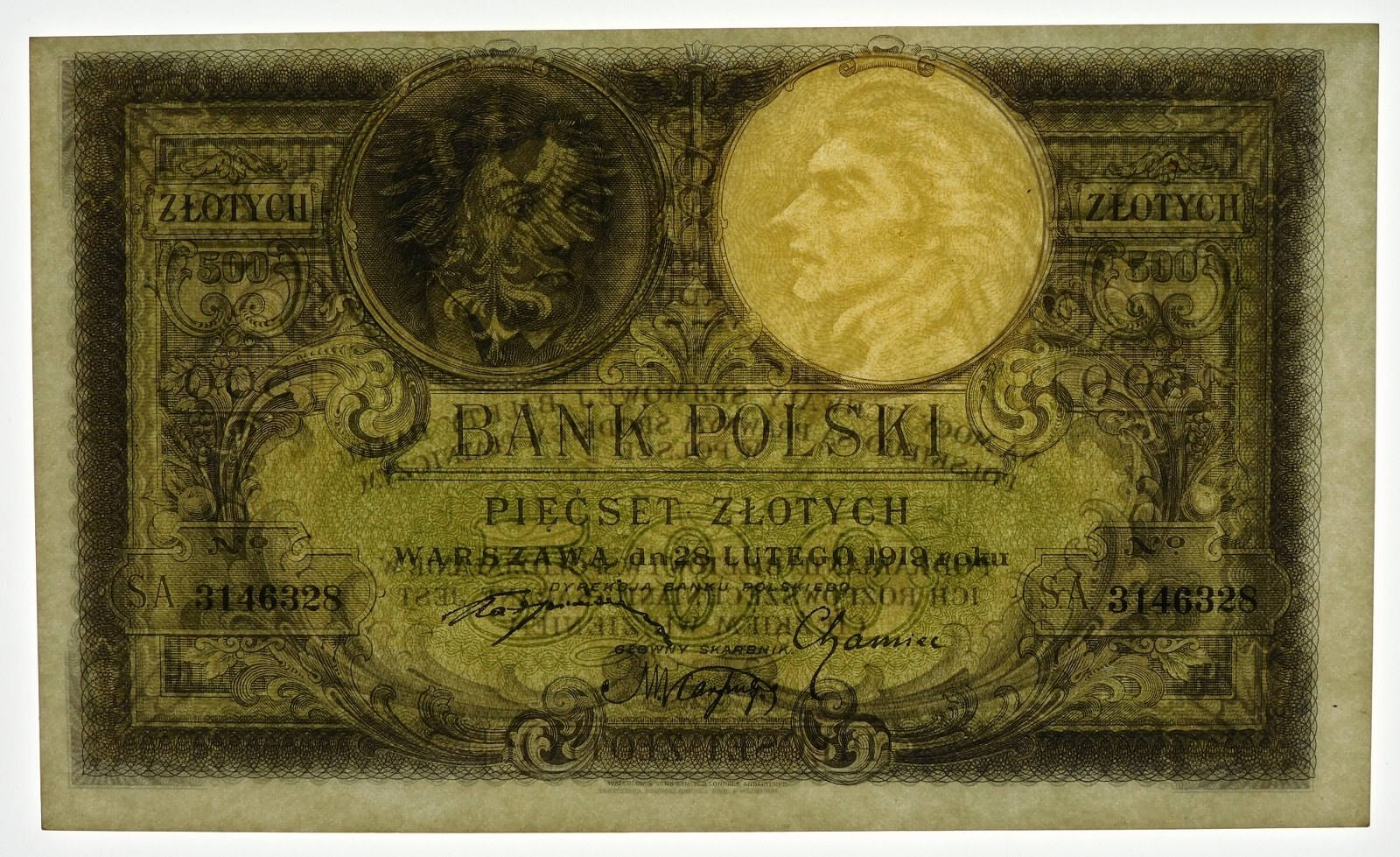 Banknot 500 złotych 1919 - odmiana z numeratorem wysokim = 3,75mm