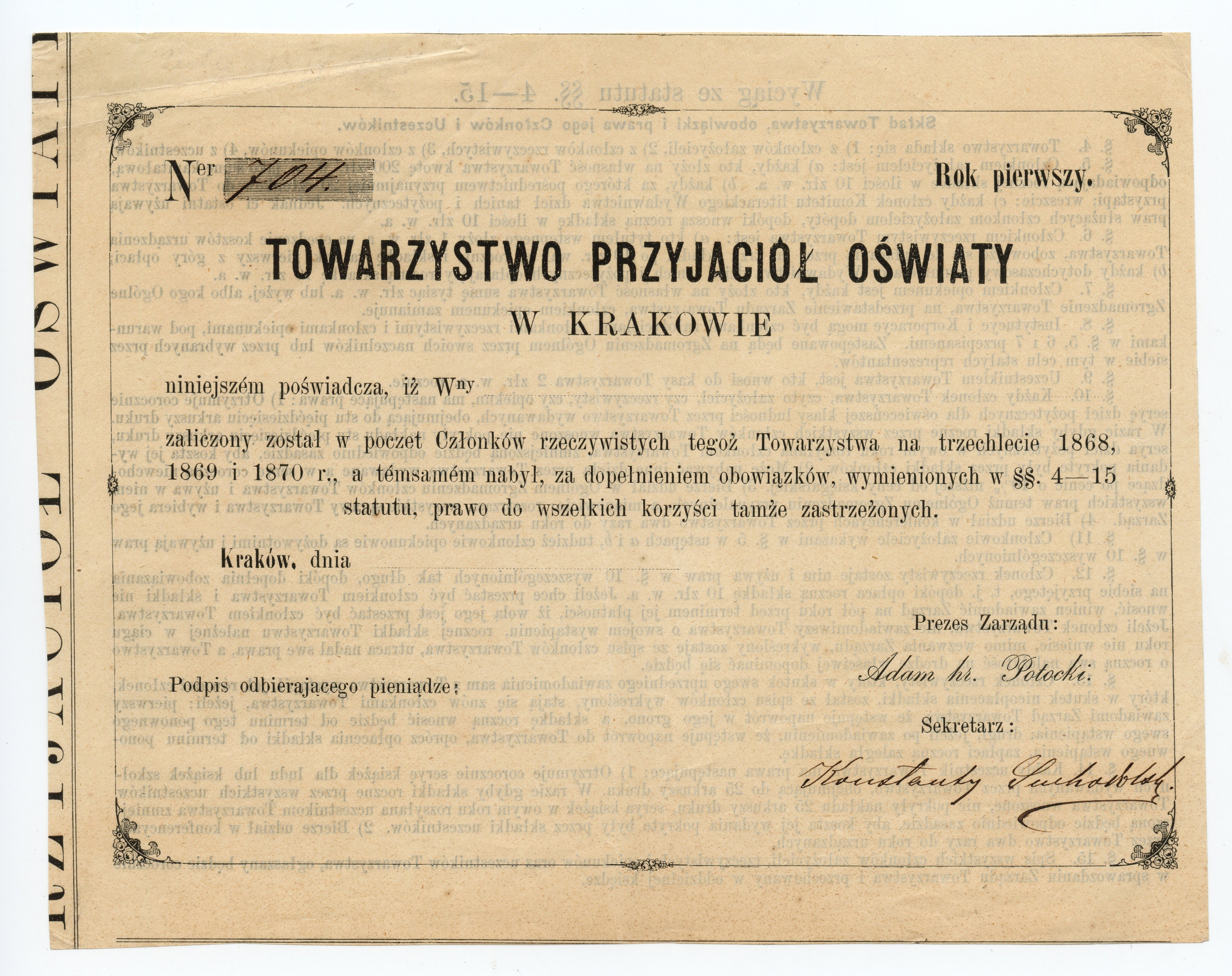 Niestety blankiet nie jest podpisany przez ówczensego Prezesa Zarządu: Adama hr. Potockiego.