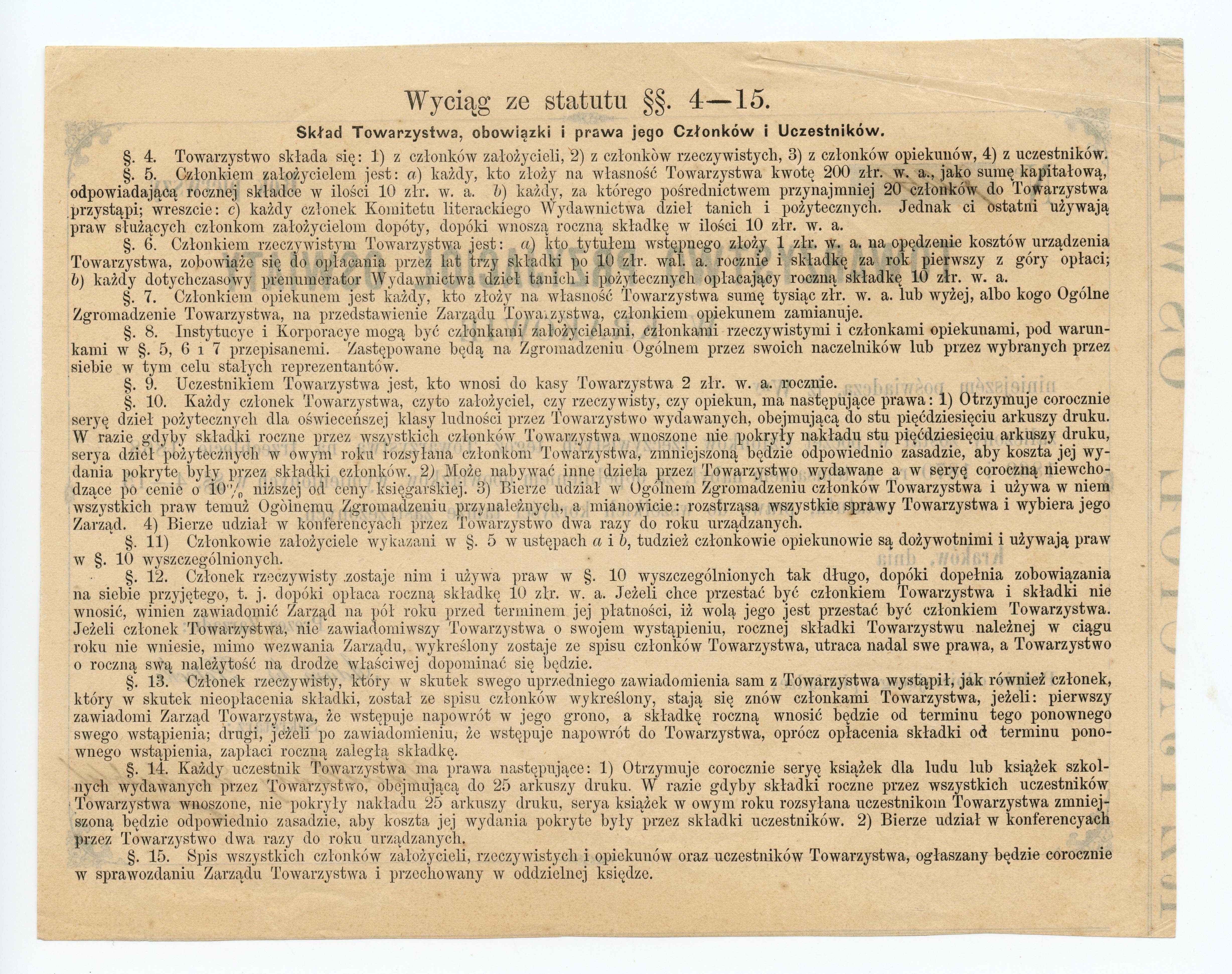 Blankiet zaliczenia w Poczet Członków Towarzystwa za trzylecie 1868-1870, niewypełniony.