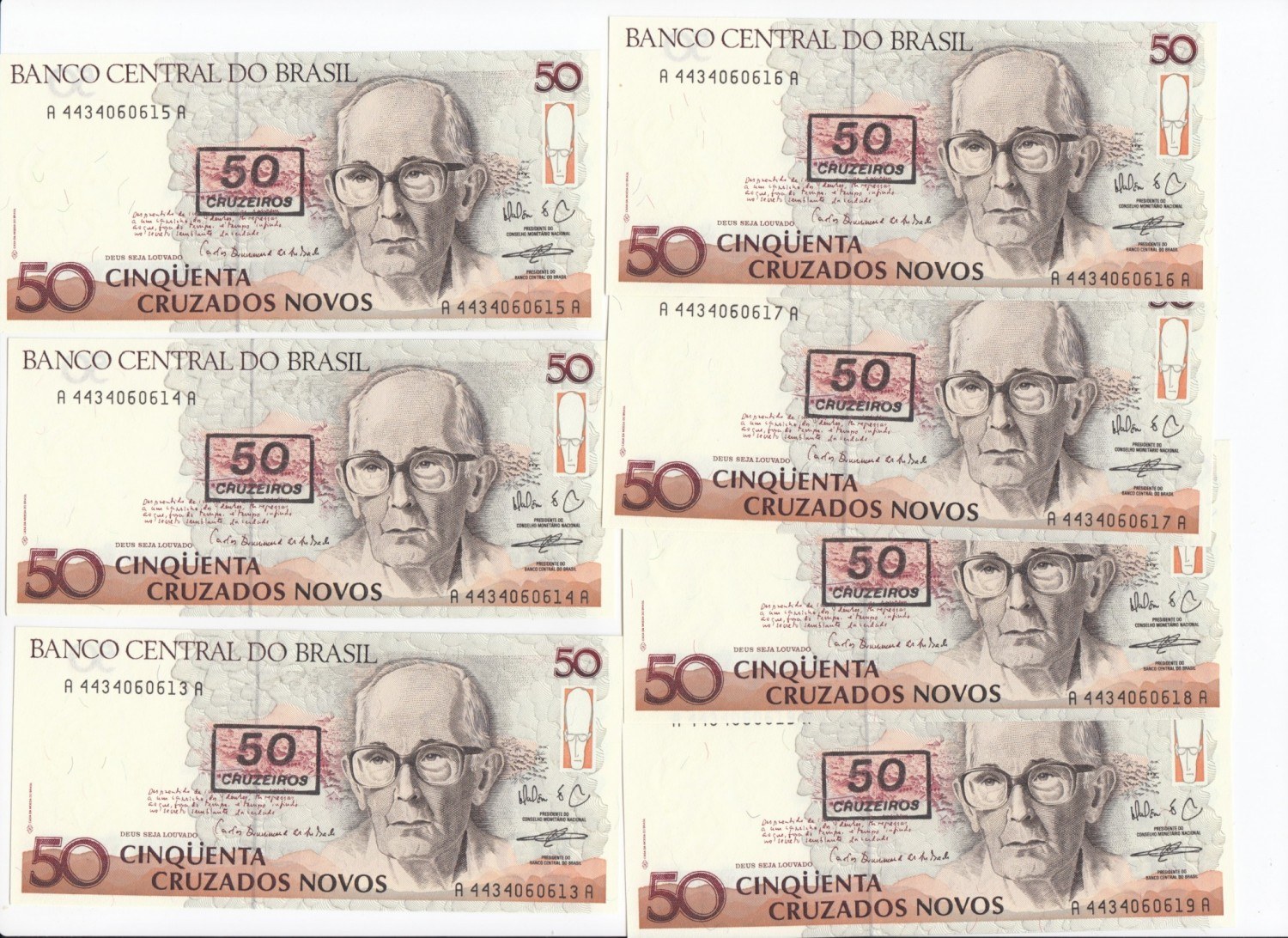 Brazil 50 Cruzados Novos ND (1989-90) - Consecutive numbers (7)