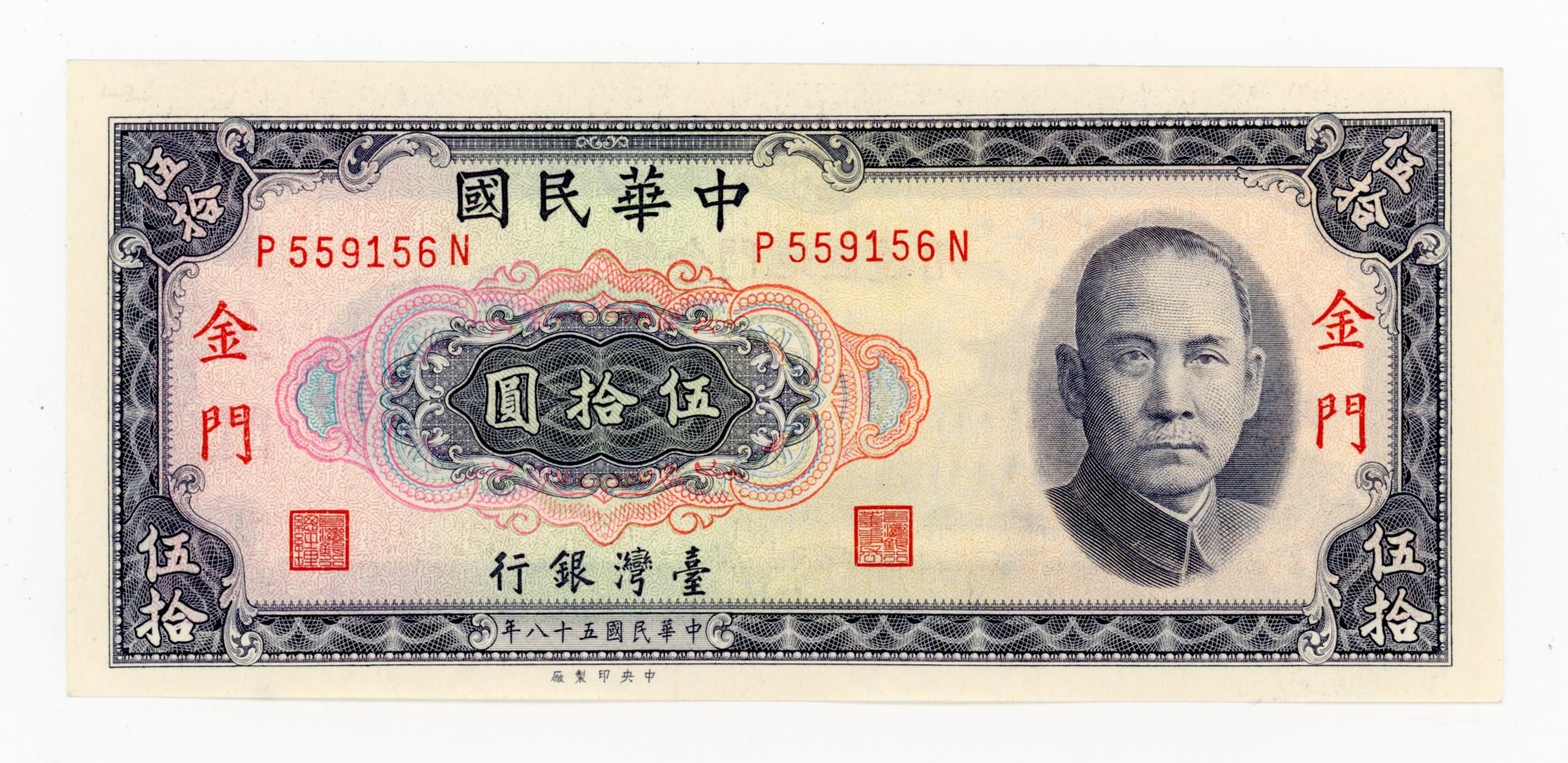 Chiny, Tajwan, 50 juanów 1969. Stan zachowania: 1. Literatura: Pick R111