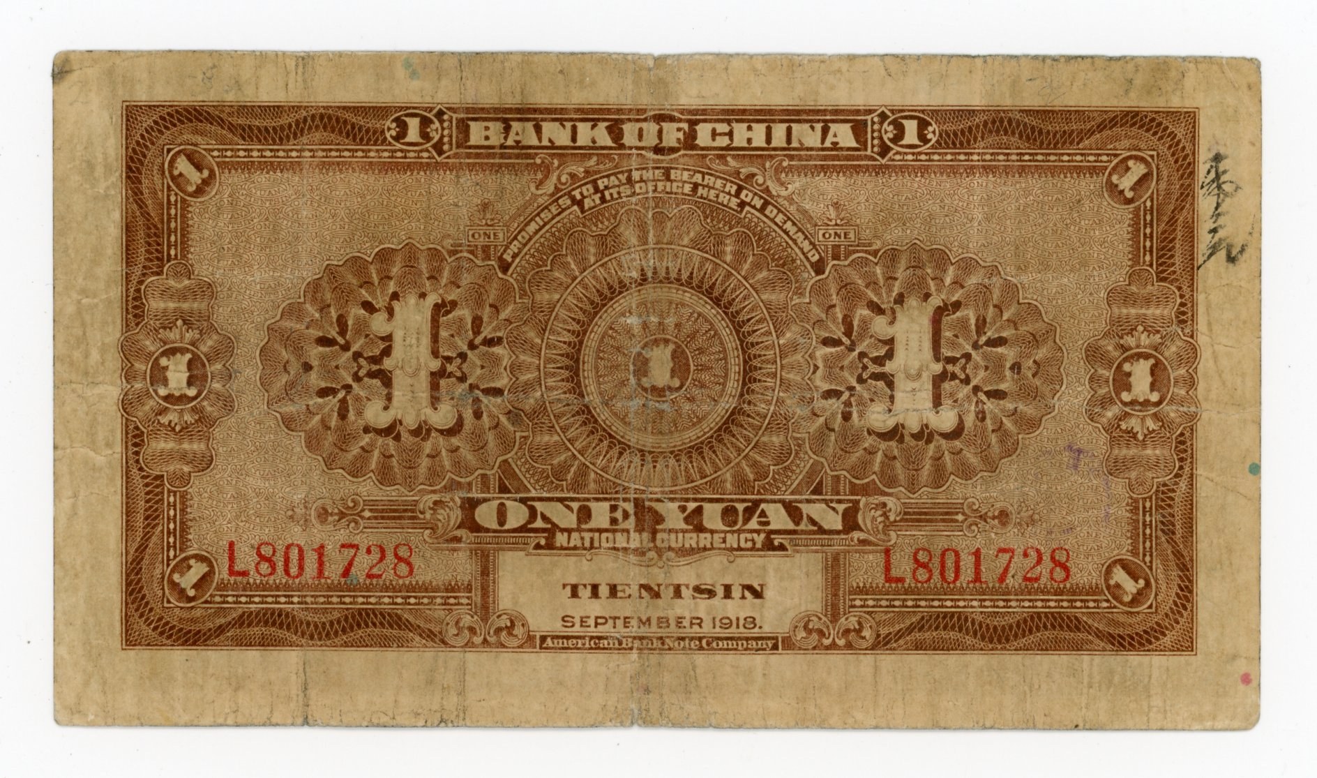 Chiny, Tientsin, 1 juan 1918. Stan zachowania 3-. Kilkakrotnie złamane. Literatura: Pick 51q