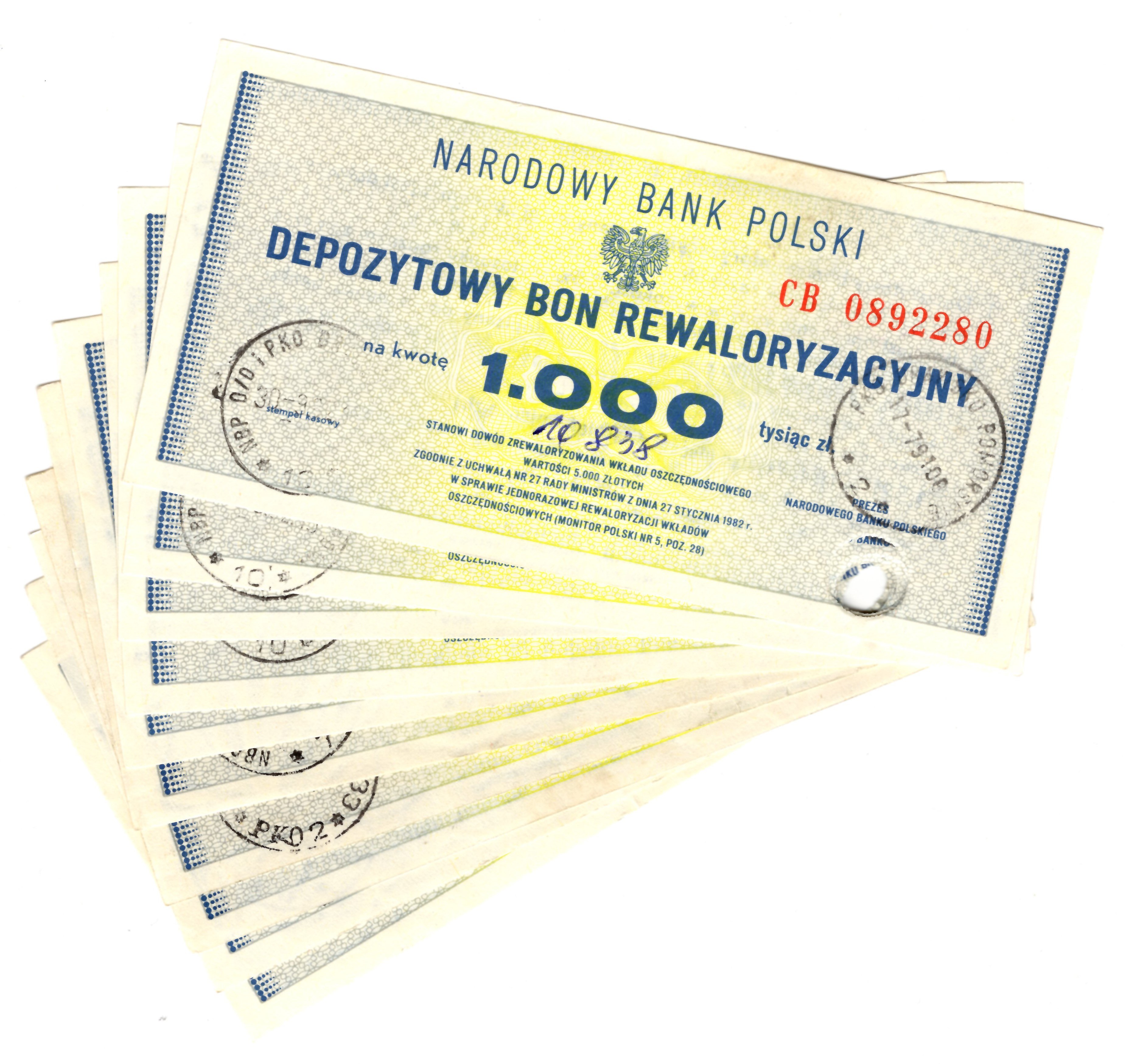 Depozytowy Bon Rewaloryzacyjny, 1 000 Złotych, seria CB - zestaw 10 sztuk