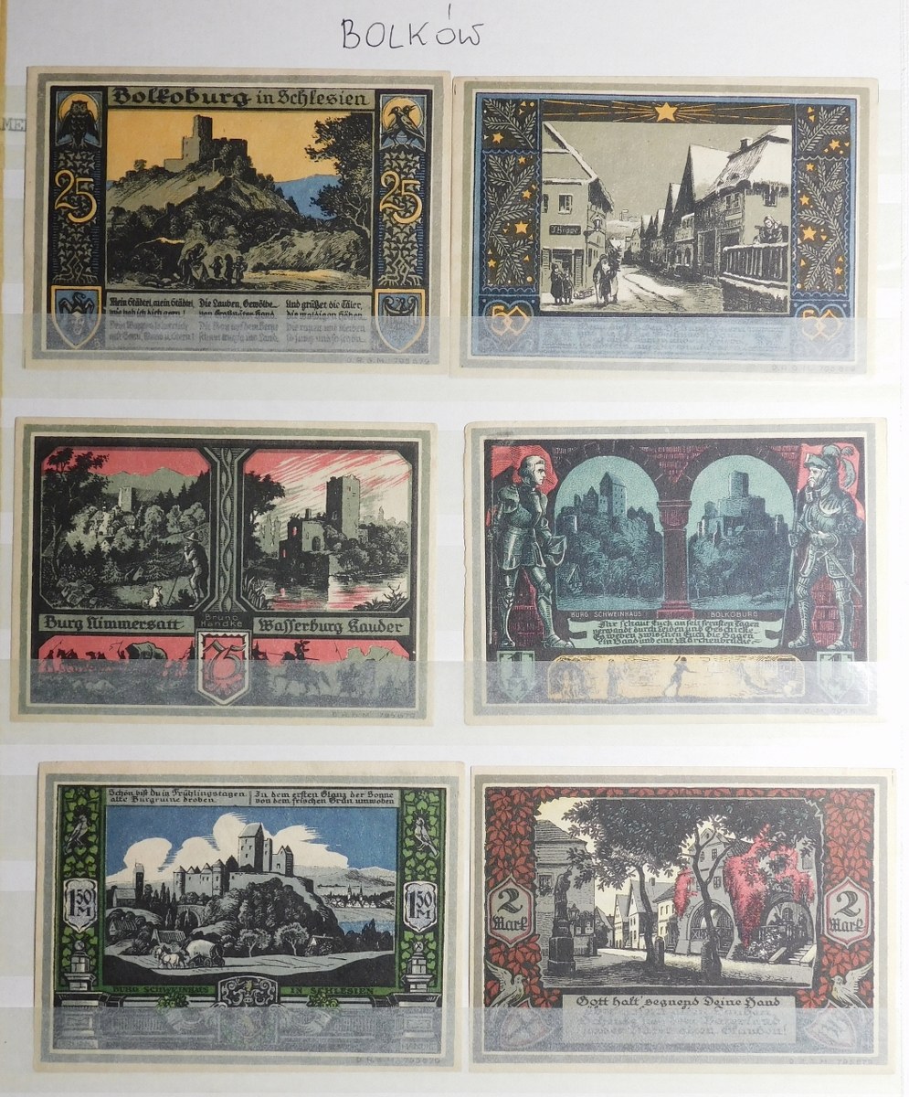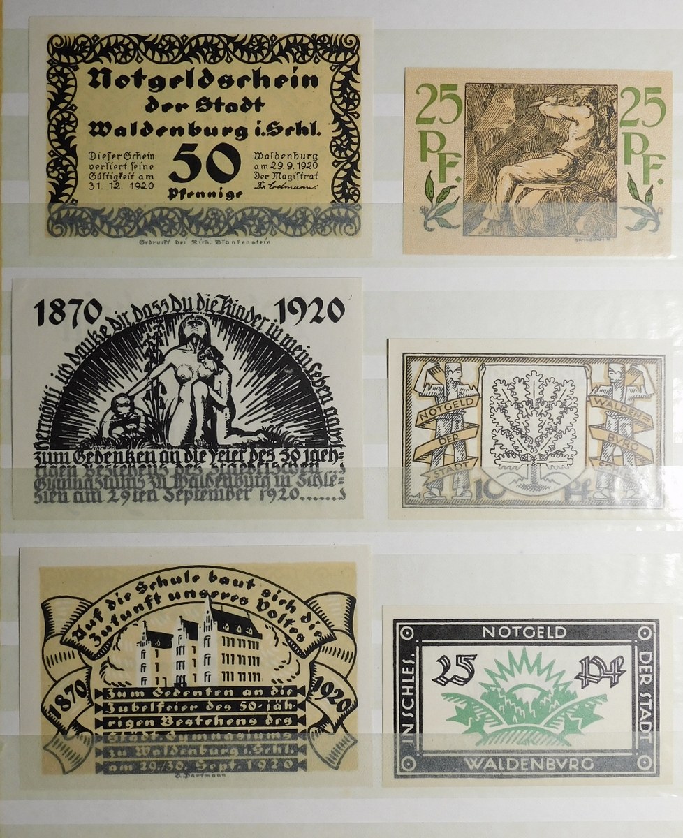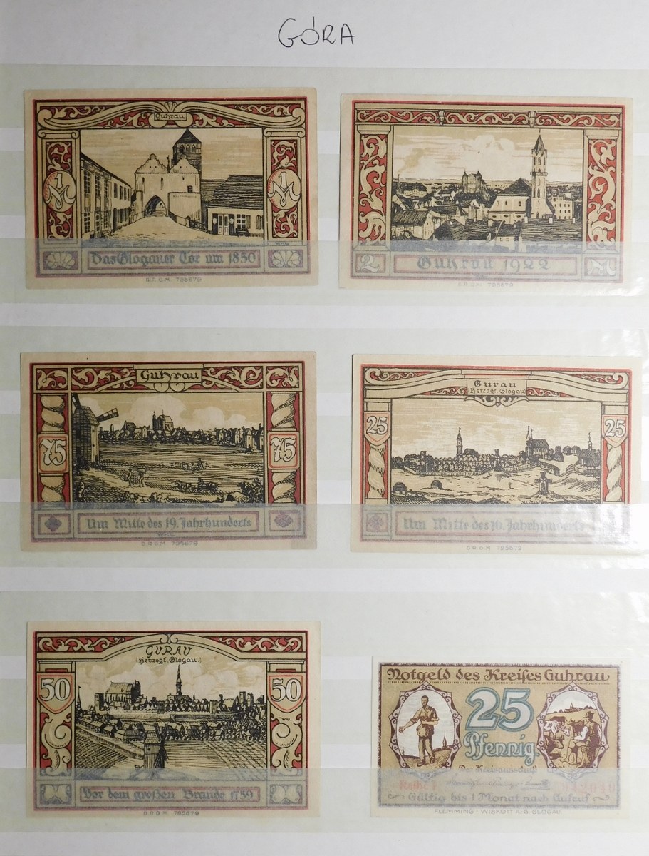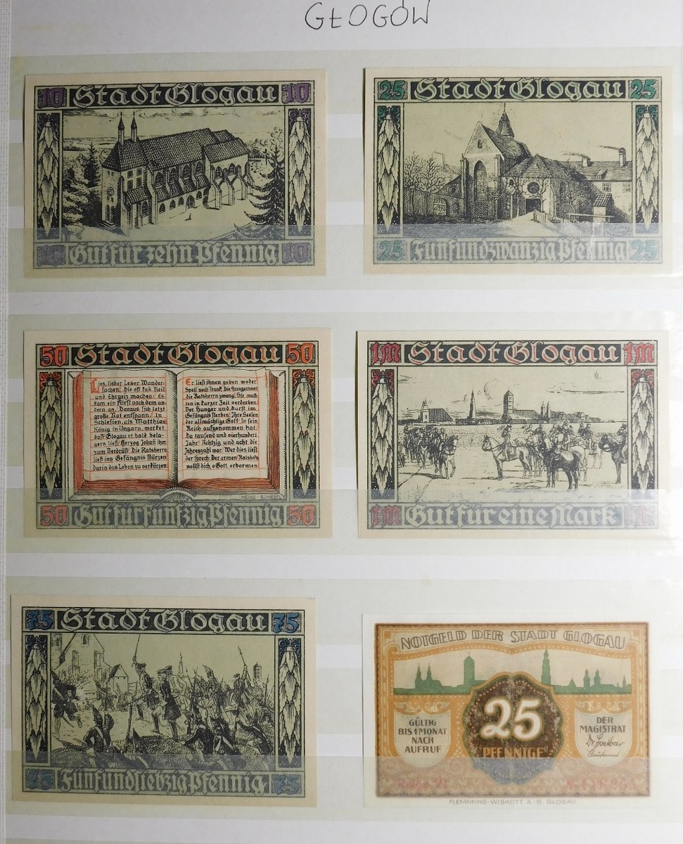 Klaser zawierający kolekcję 77 notgeldów z Dolnego Śląska, miasta: