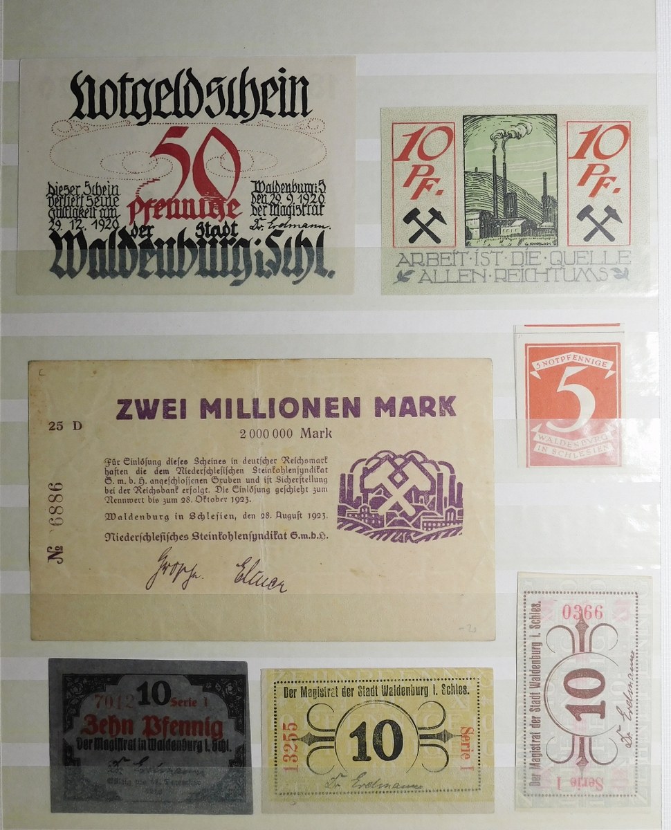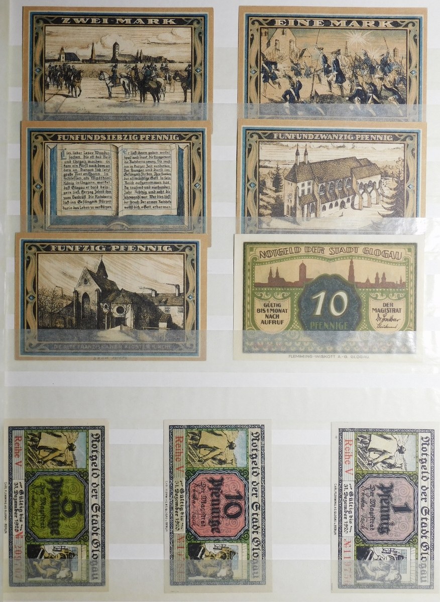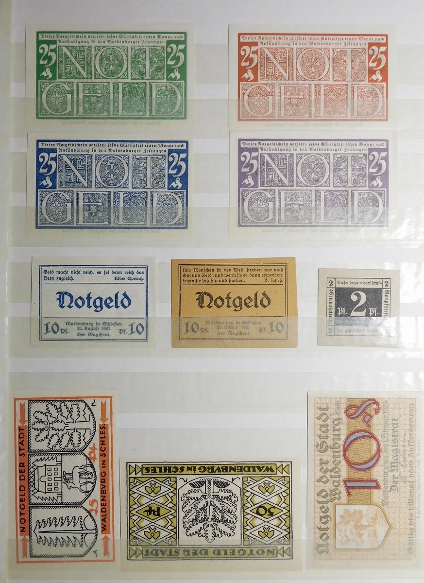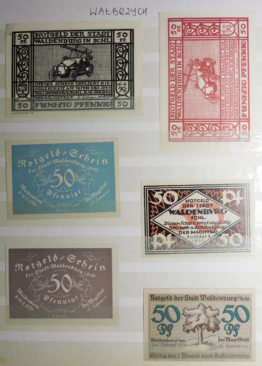 Klaser zawierający kolekcję 77 notgeldów z Dolnego Śląska, miasta: