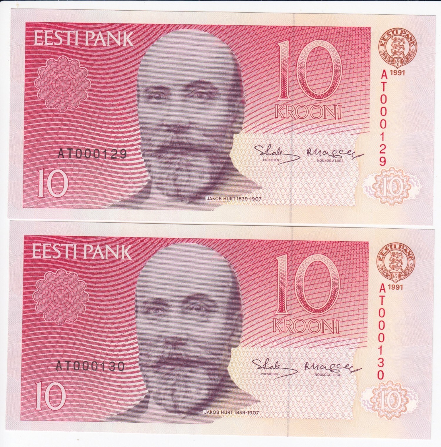 Estonia 10 Krooni 1991 - Consecutive numbers (2)