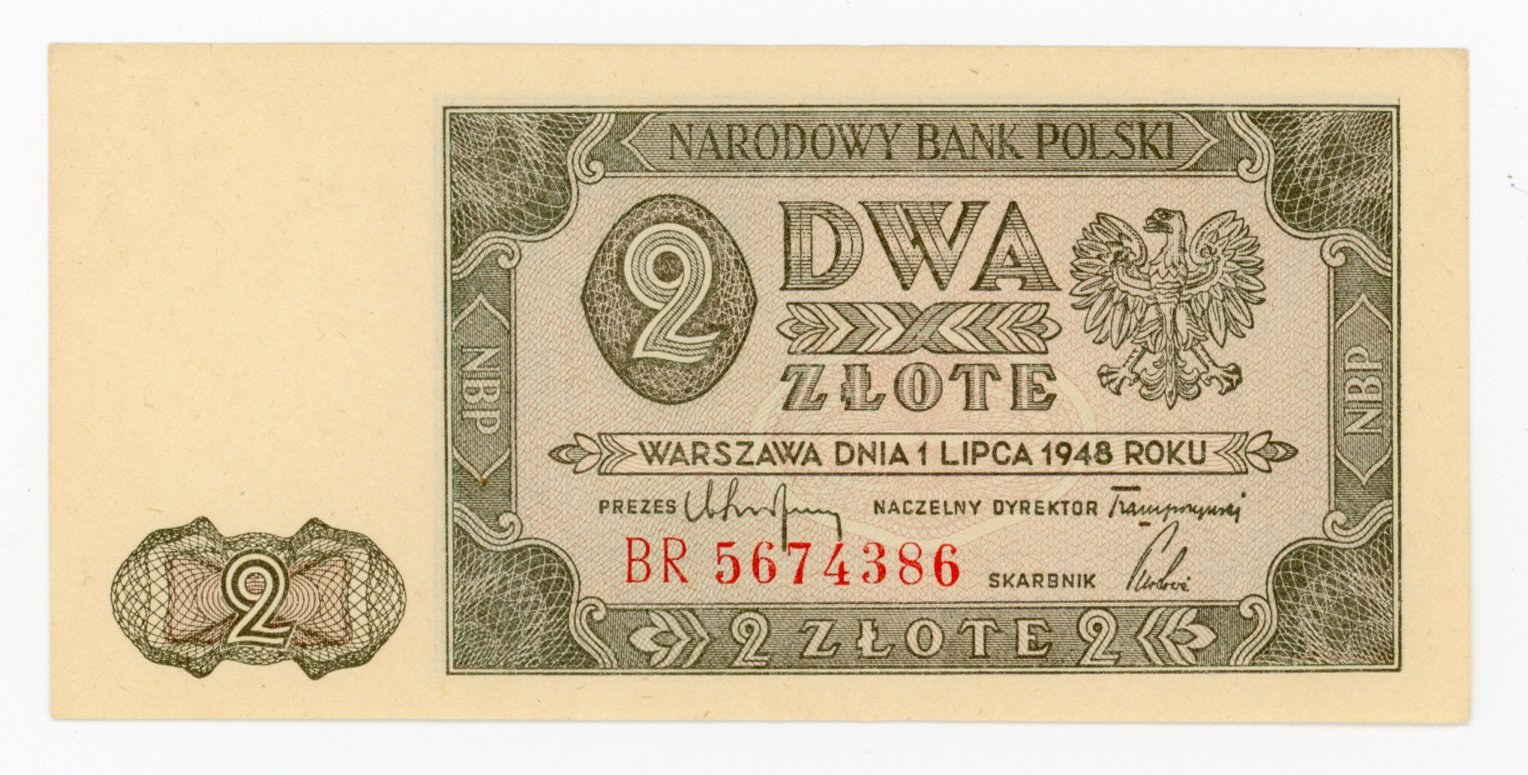 PRL, 2 złote 1948 BR. Stan zachowania 1. Bardzo dobrze zachowane. Literatura: Miłczak 134c