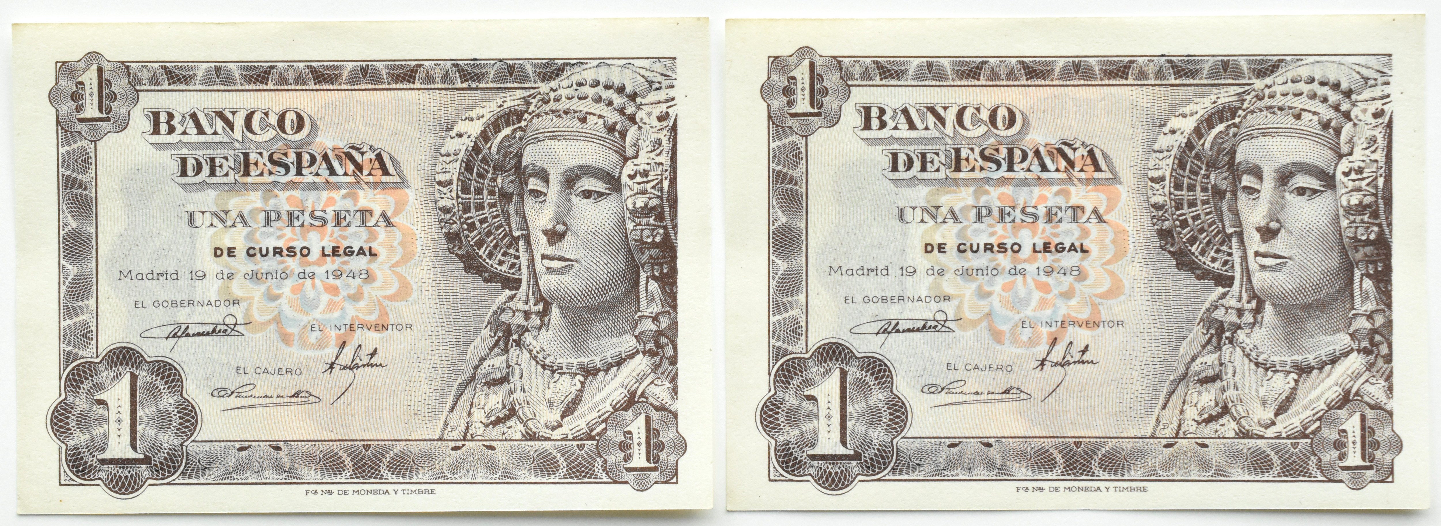 Hiszpania, Francisco Franco (1939-1975), lot 1 peseta 1948, seria G, UNC