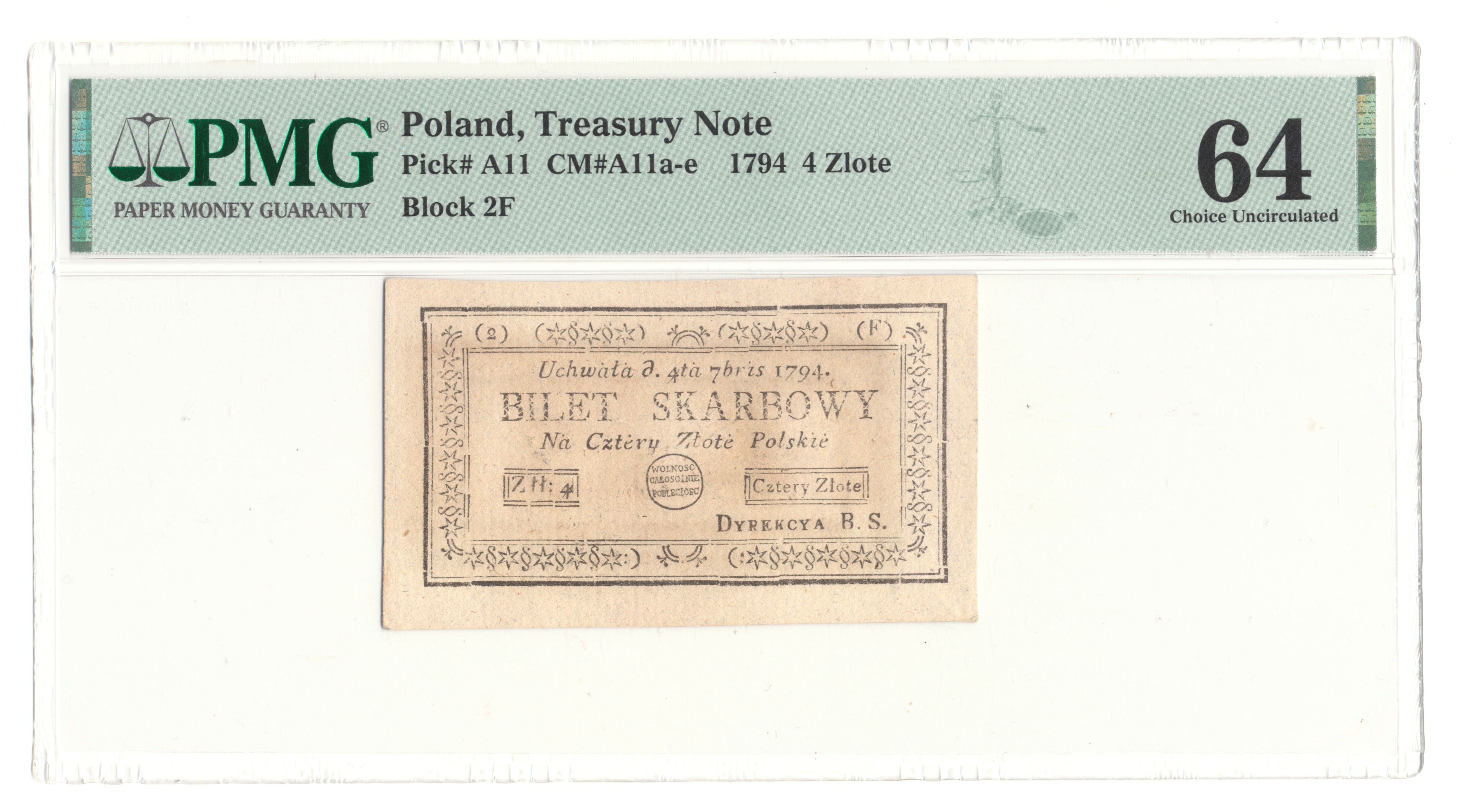 Insurekcja Kościuszkowska, 4 złote 1794 (2)(F), wysoka nota