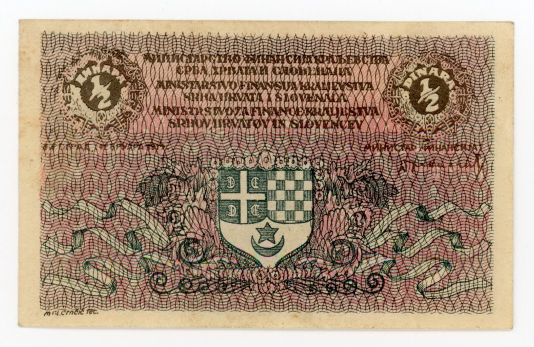 Jugosławia, 1/2 dinara 1919. Stan zachowania 1. Bardzo dobrze zachowane. Literatura: Pick 11