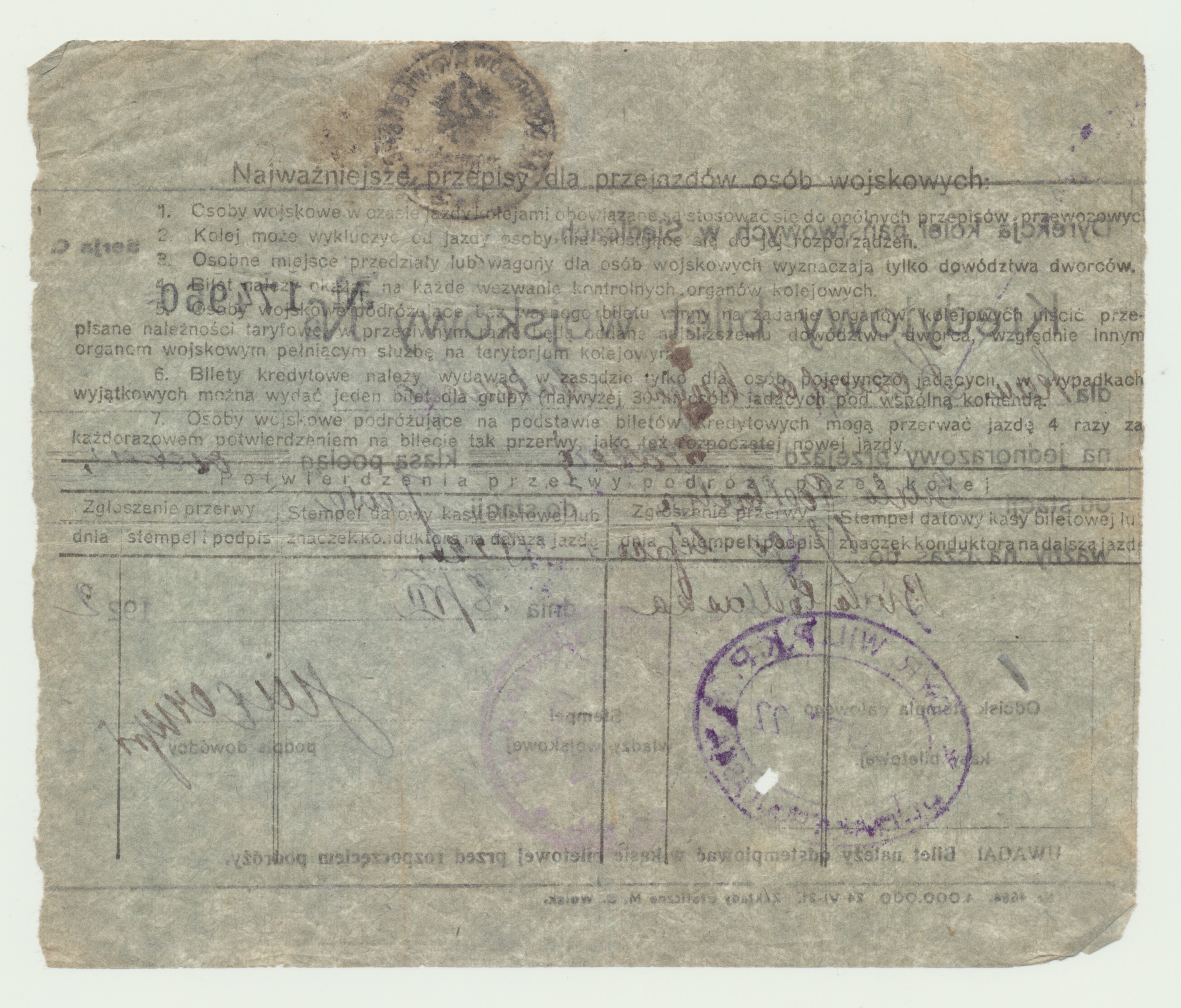 Ciekawy kwit międzywojenny związany z wojskiem i koleją.