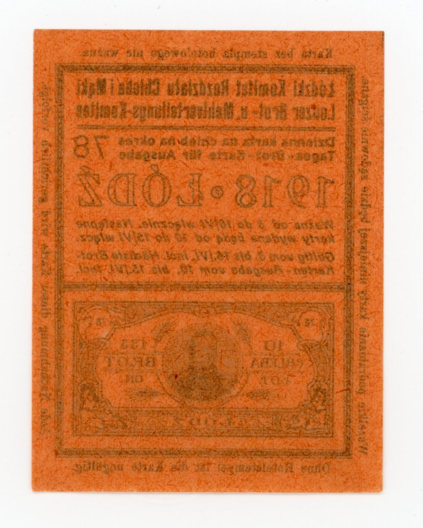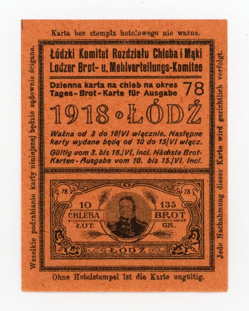 Łódź, kartka żywnościowa jednorazowa na chleb 1918 - 78 (339)