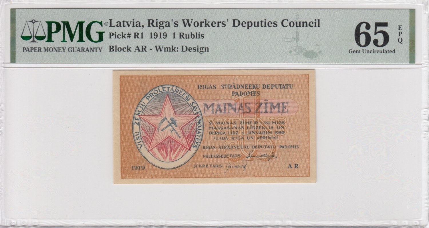 Latvia (Riga's Workers' Deputies Council) 1 Rublis 1919 - PMG 65 EPQ Gem Uncirculated