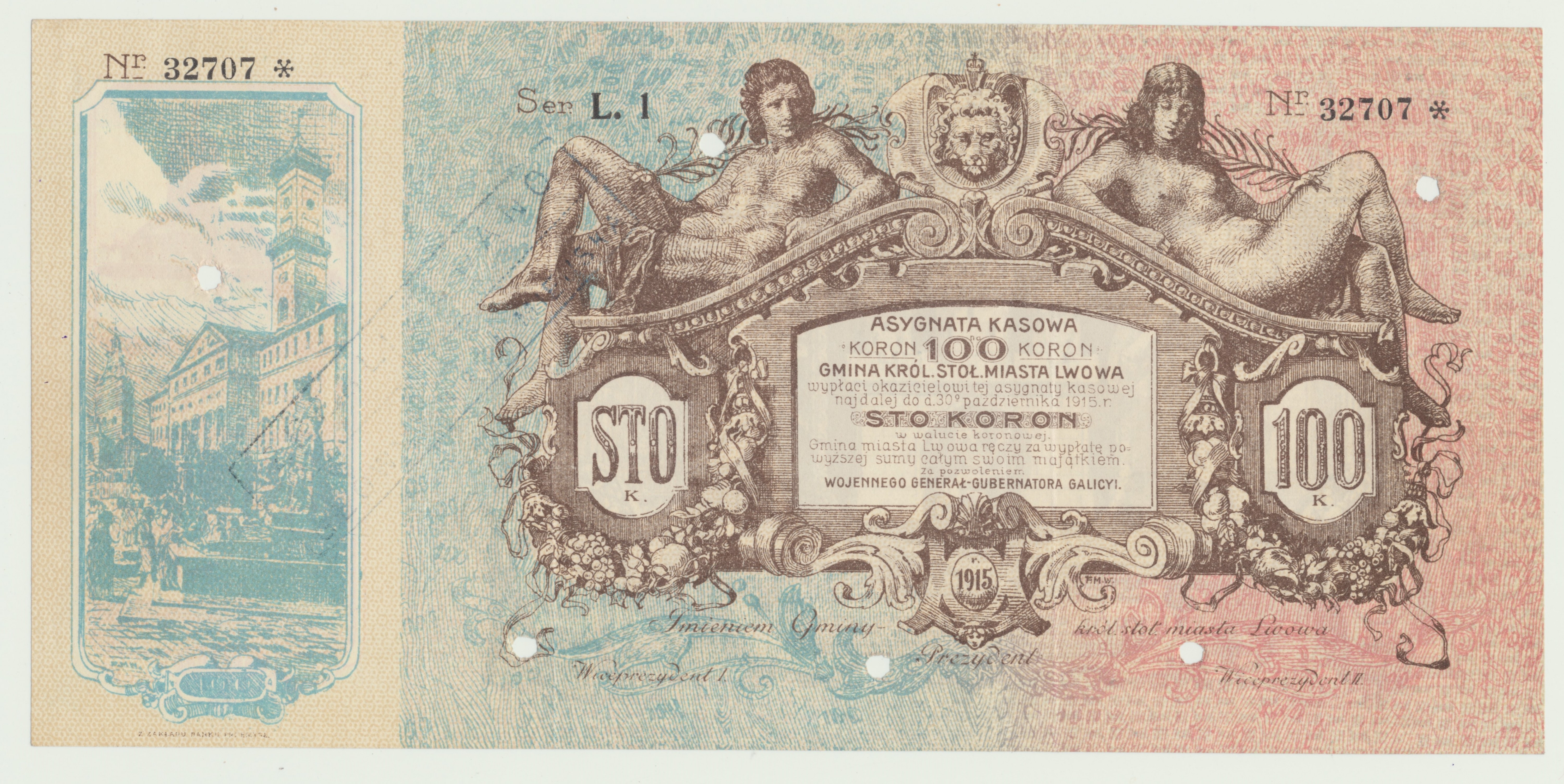 Lwów, Asygnata Kasowa na 100 koron 1915, ser. L.1