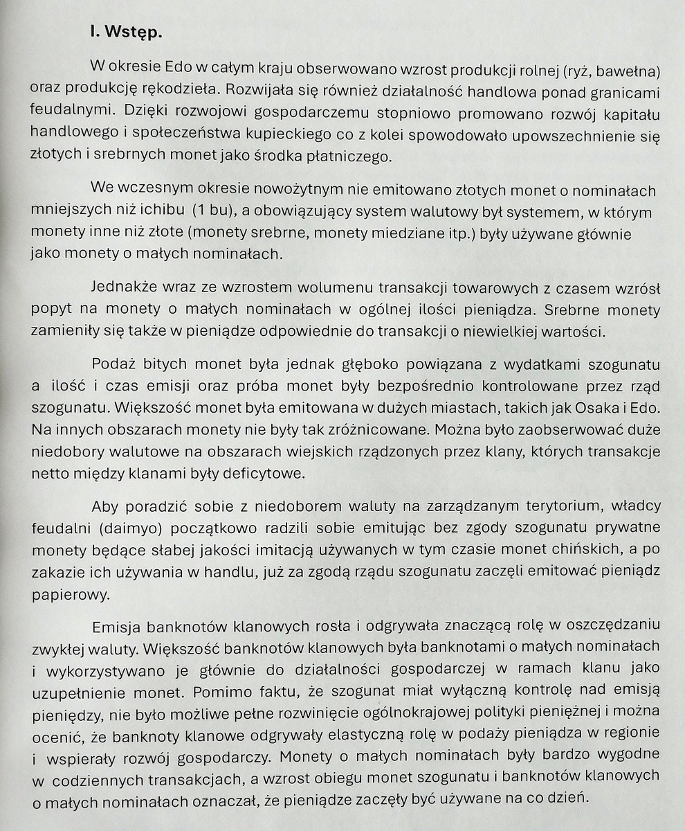 Marek Głuch: PAPIEROWY PIENIĄDZ JAPONII OKRES EDO I RESTAURACJA MEIJI 1603- 1882; Myślachowice, listopad 2024 r.