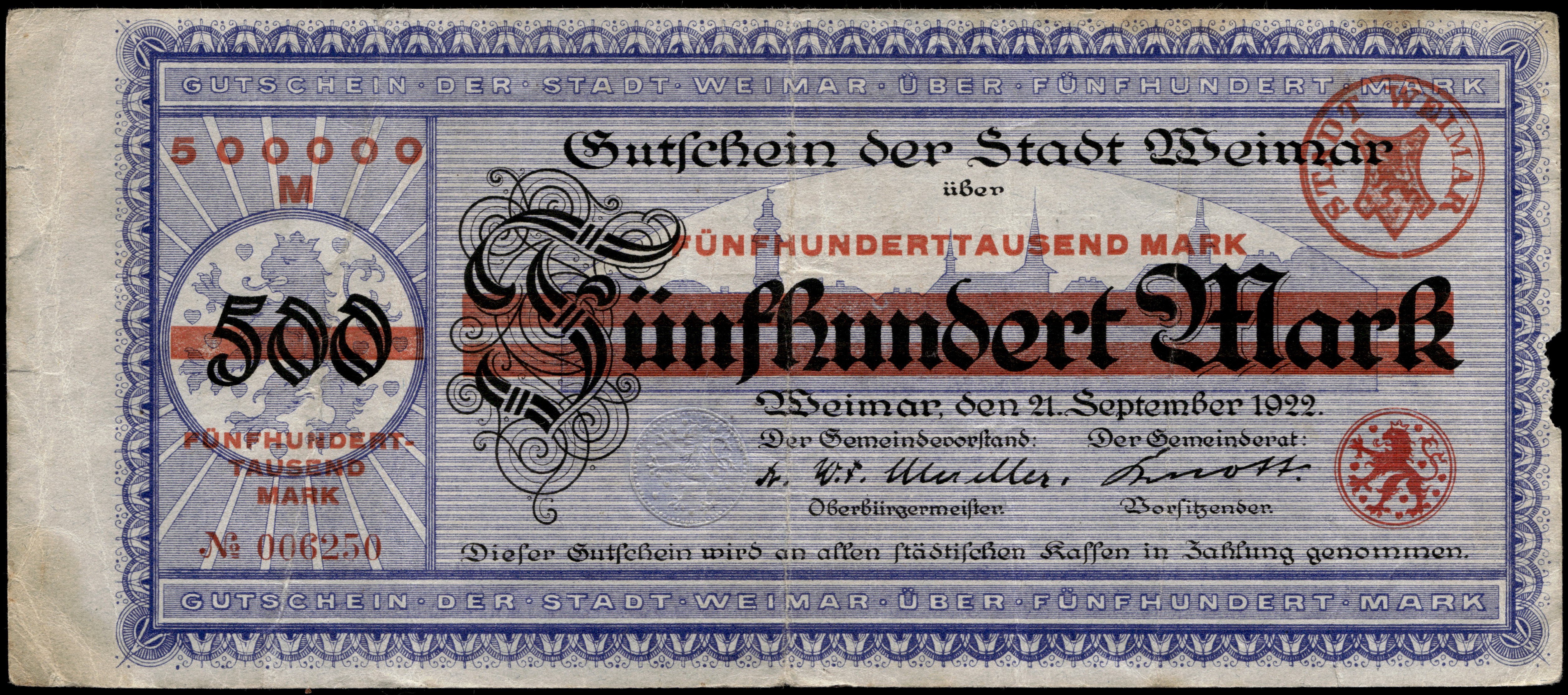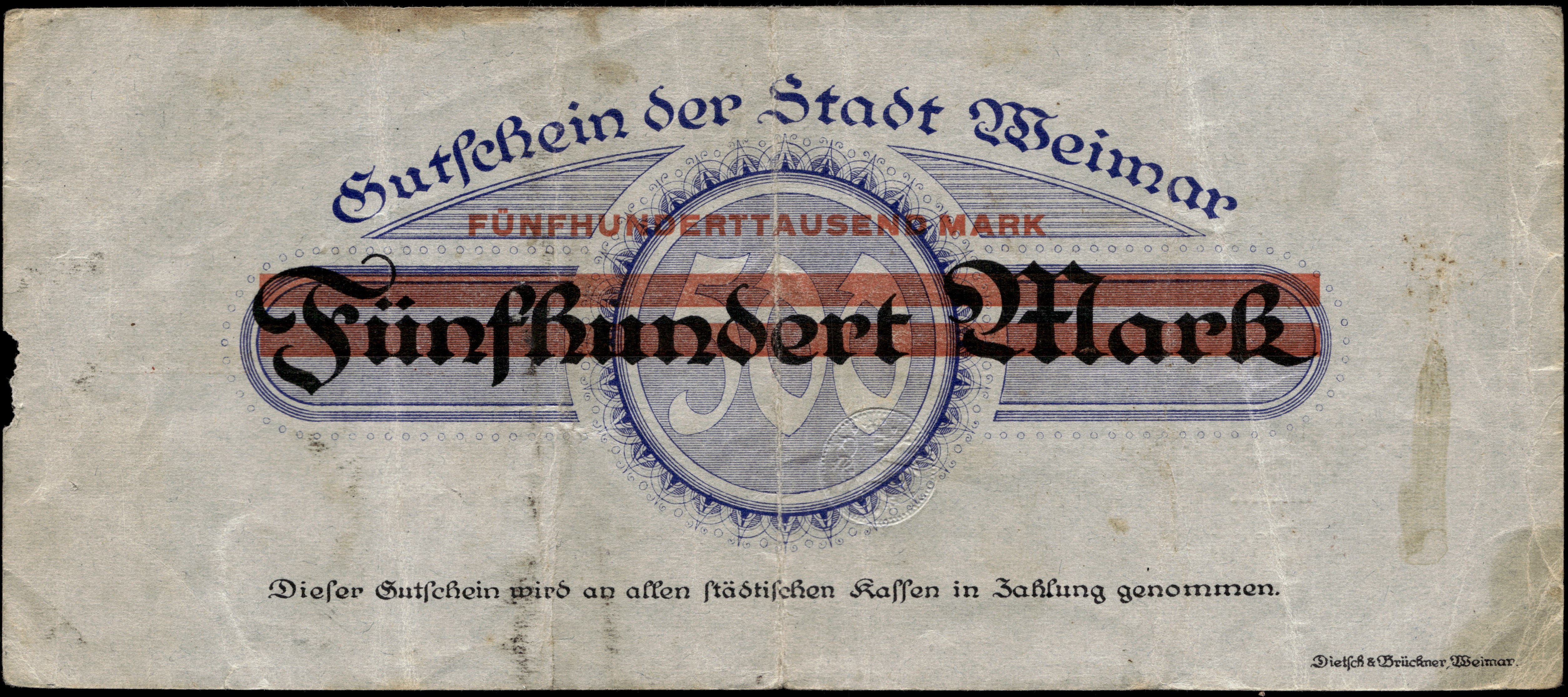 Germany. Weimar City 500000 Marks 1923 Over 500 Marks 1922